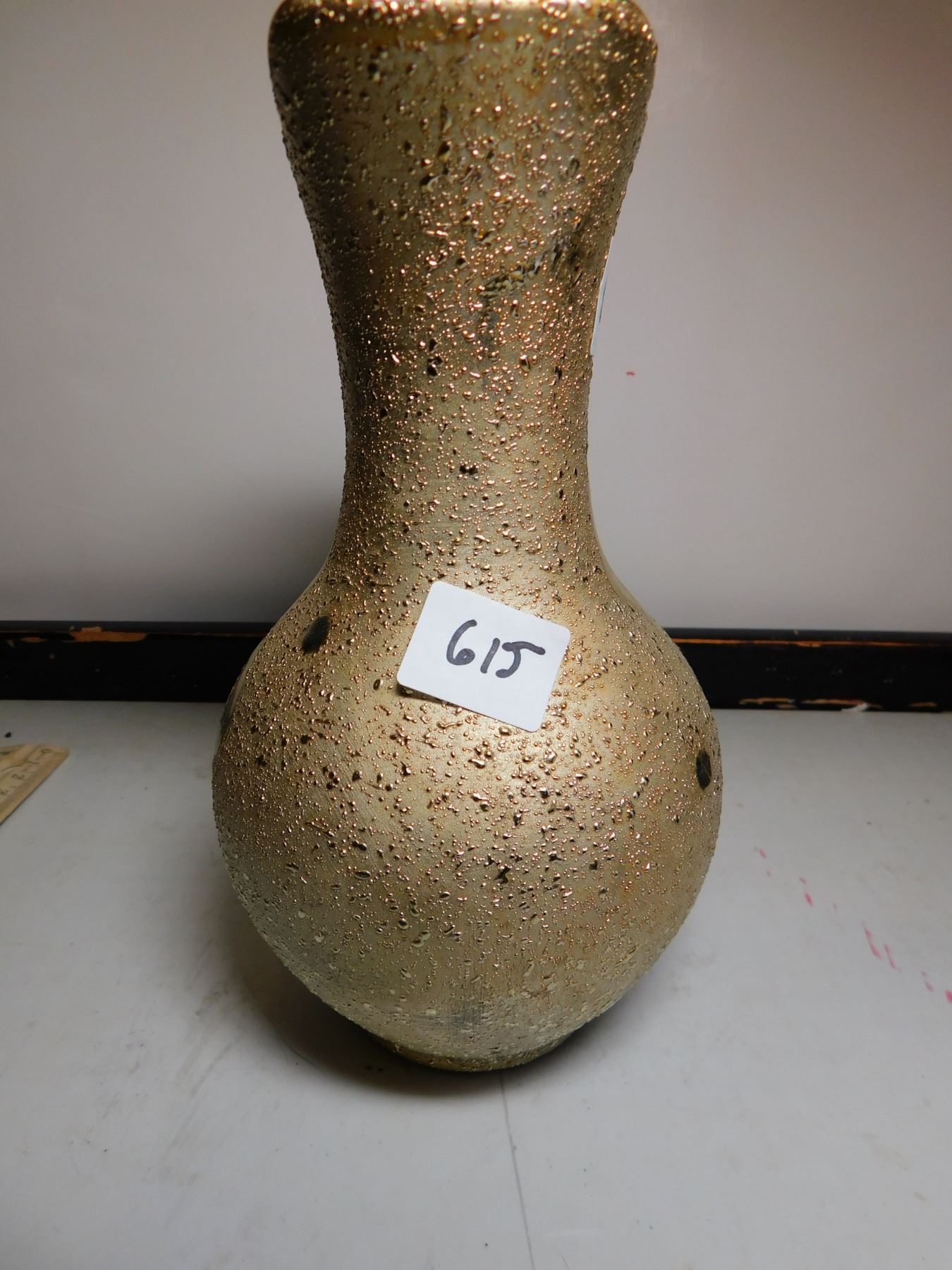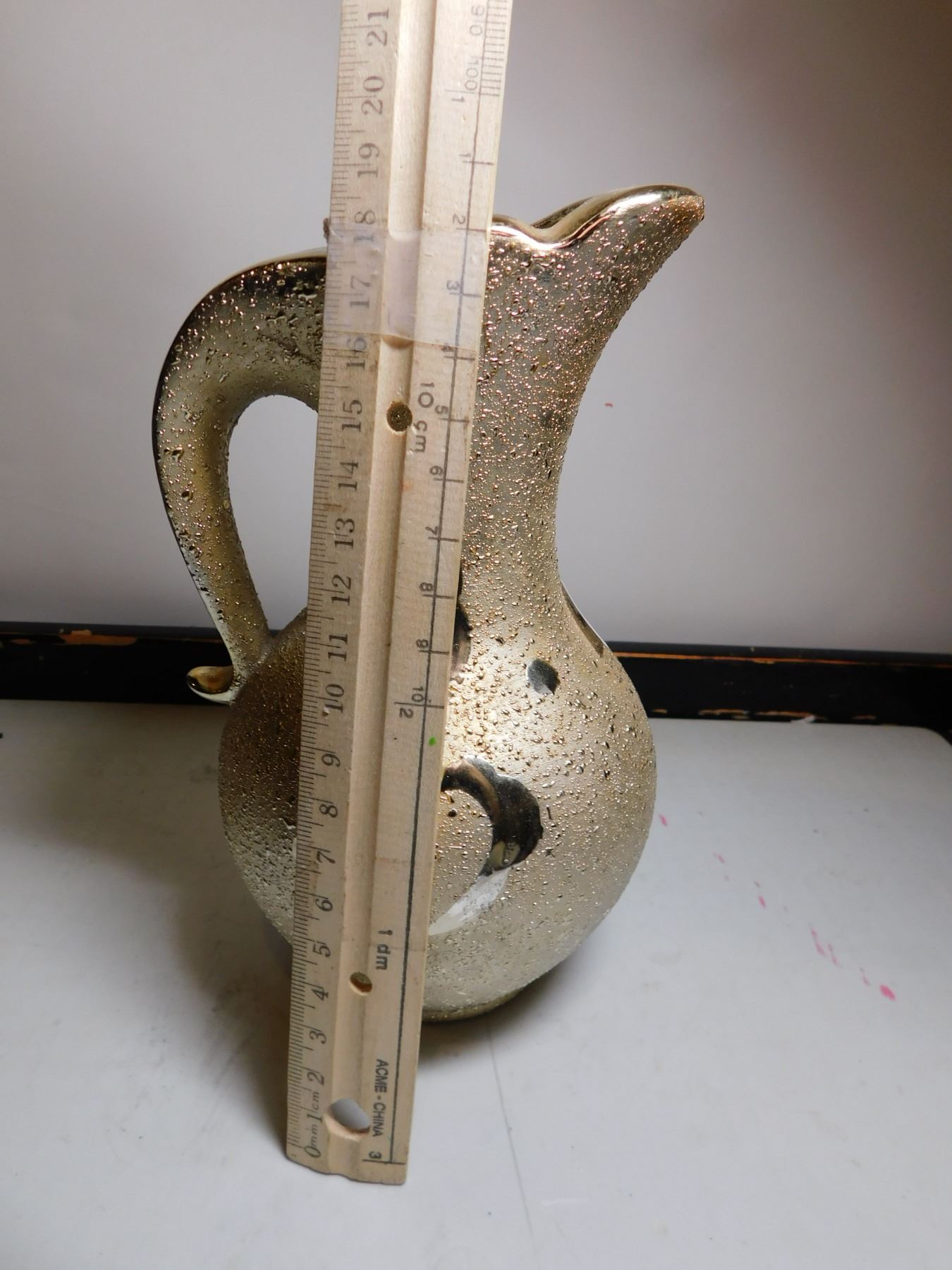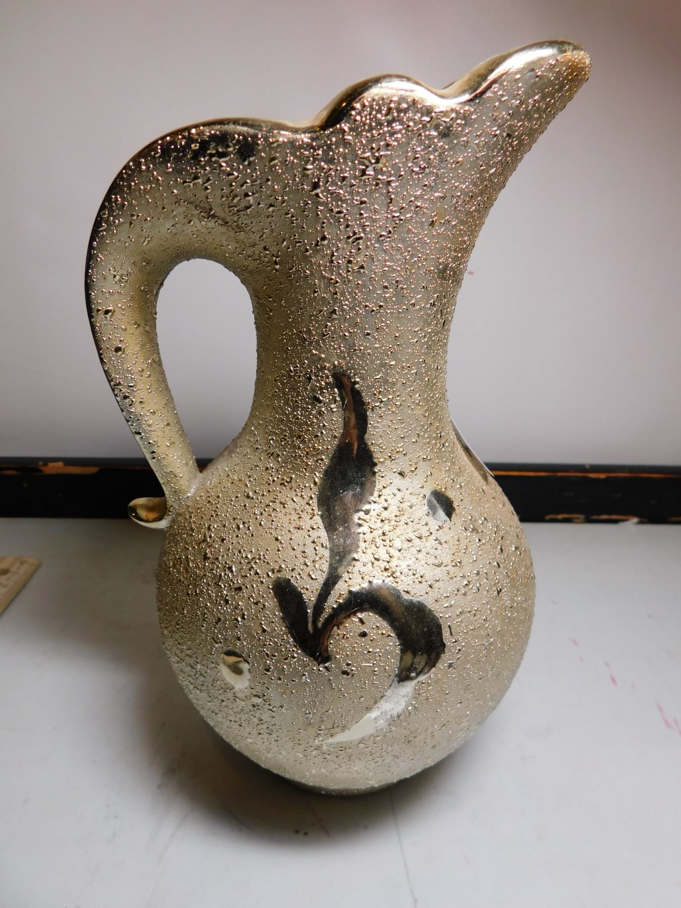 615. Gold tone Japan heavy vase/ pitcher 7” tall