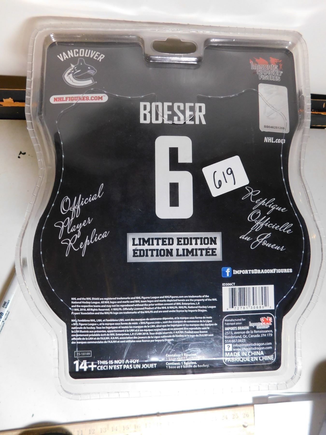 619. Brock Boeser action figure unused Vancouver jersey