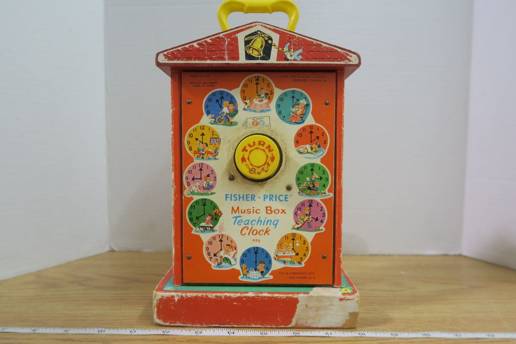 62 '68 Fisher Price Music Box Teaching Clock in working condition