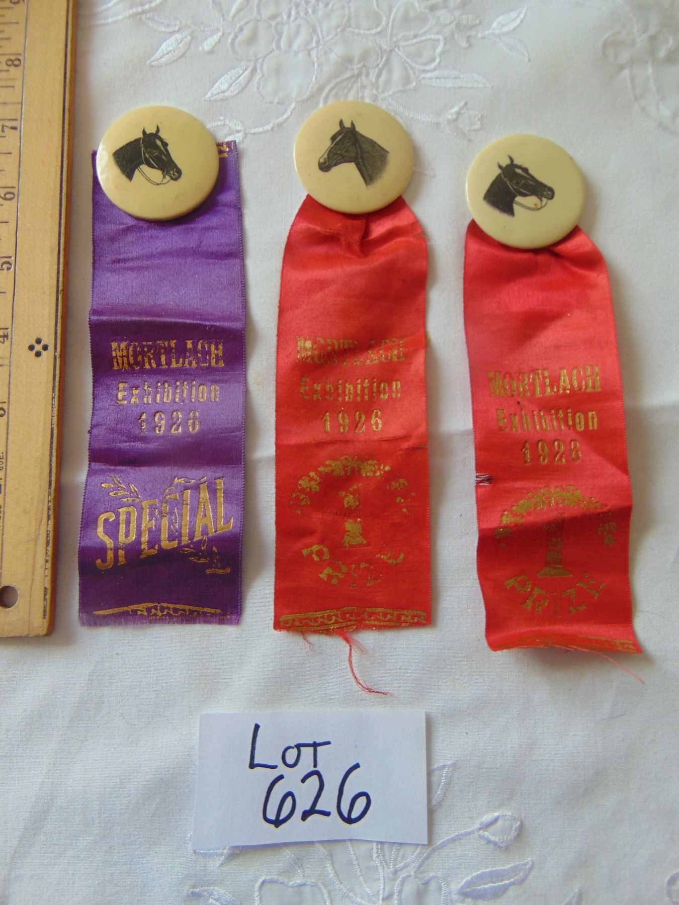 626 3 1926 EVAN BATTEL HORSE AWARD RIBBONS MORTLACH SASK.