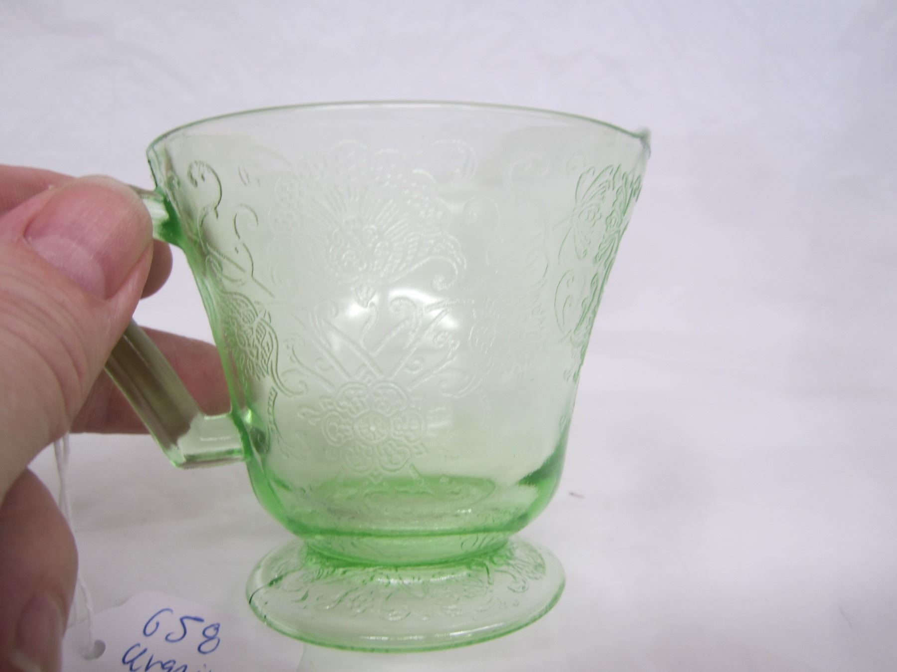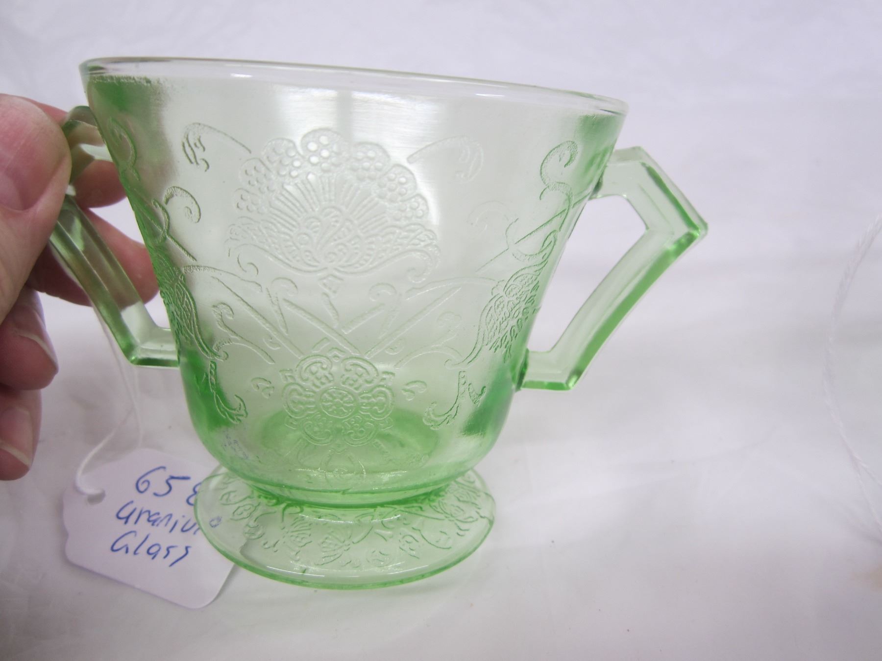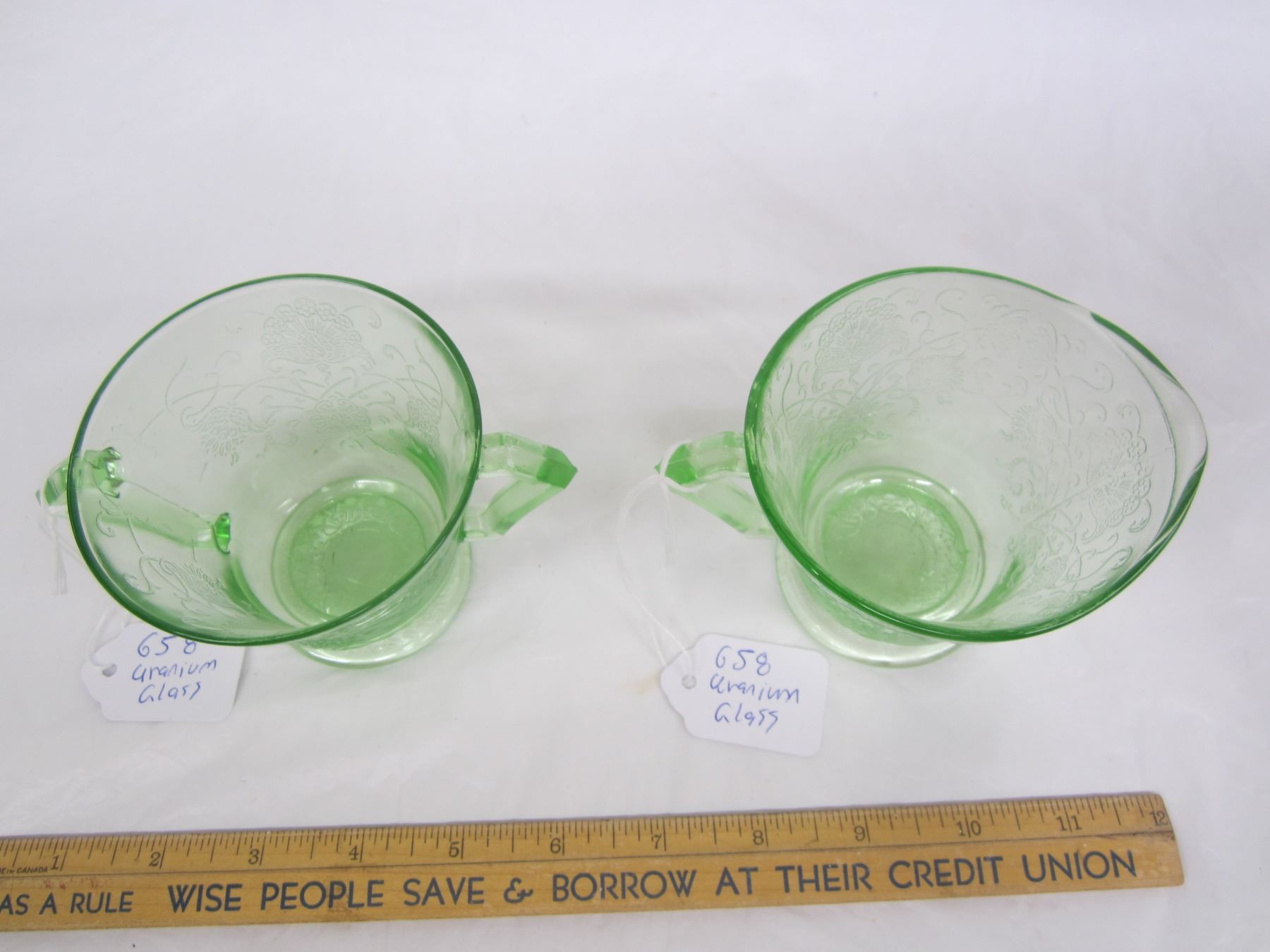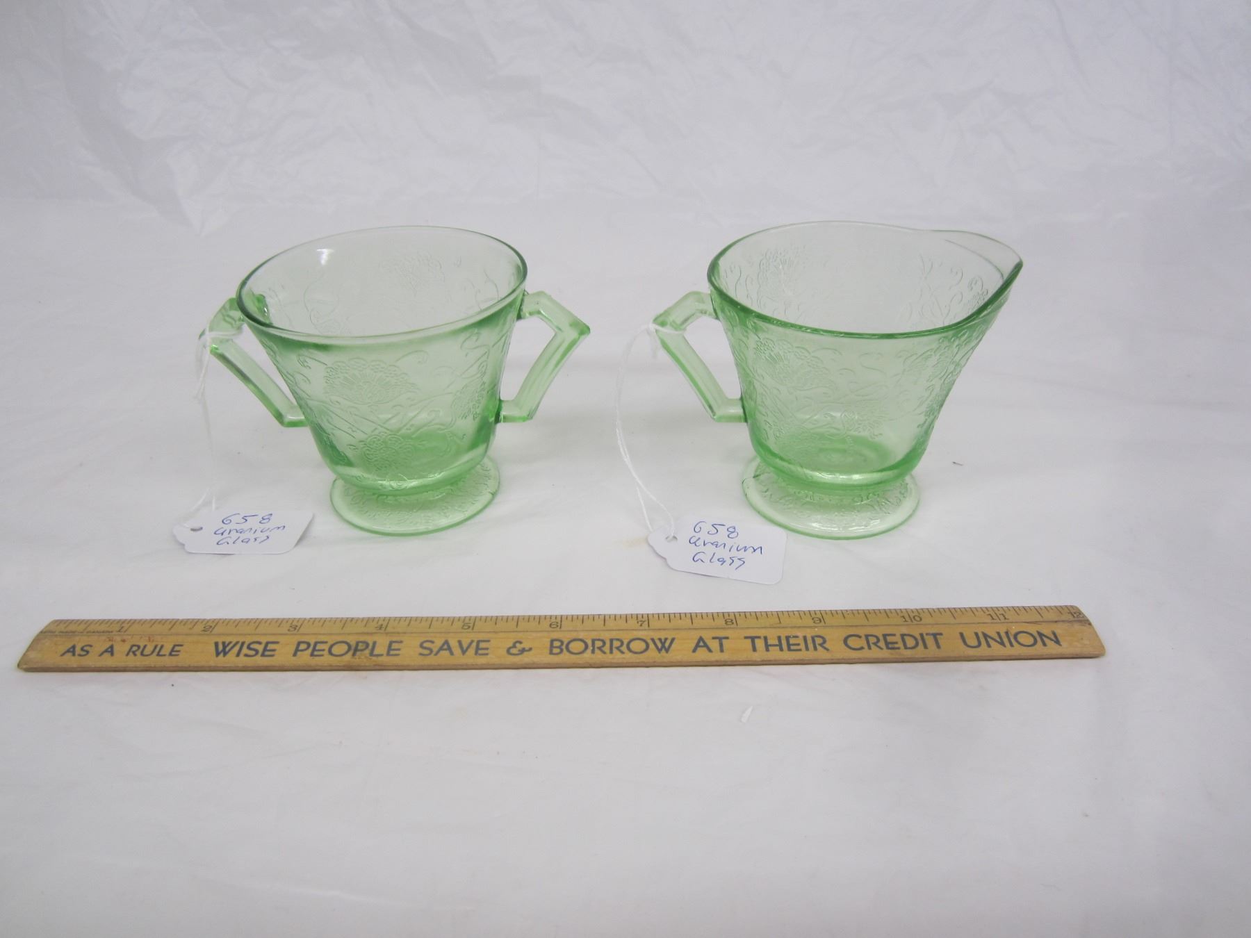 658. Antique Green Uranium Depression Glass Glows Under UV Light Cream and Sugar