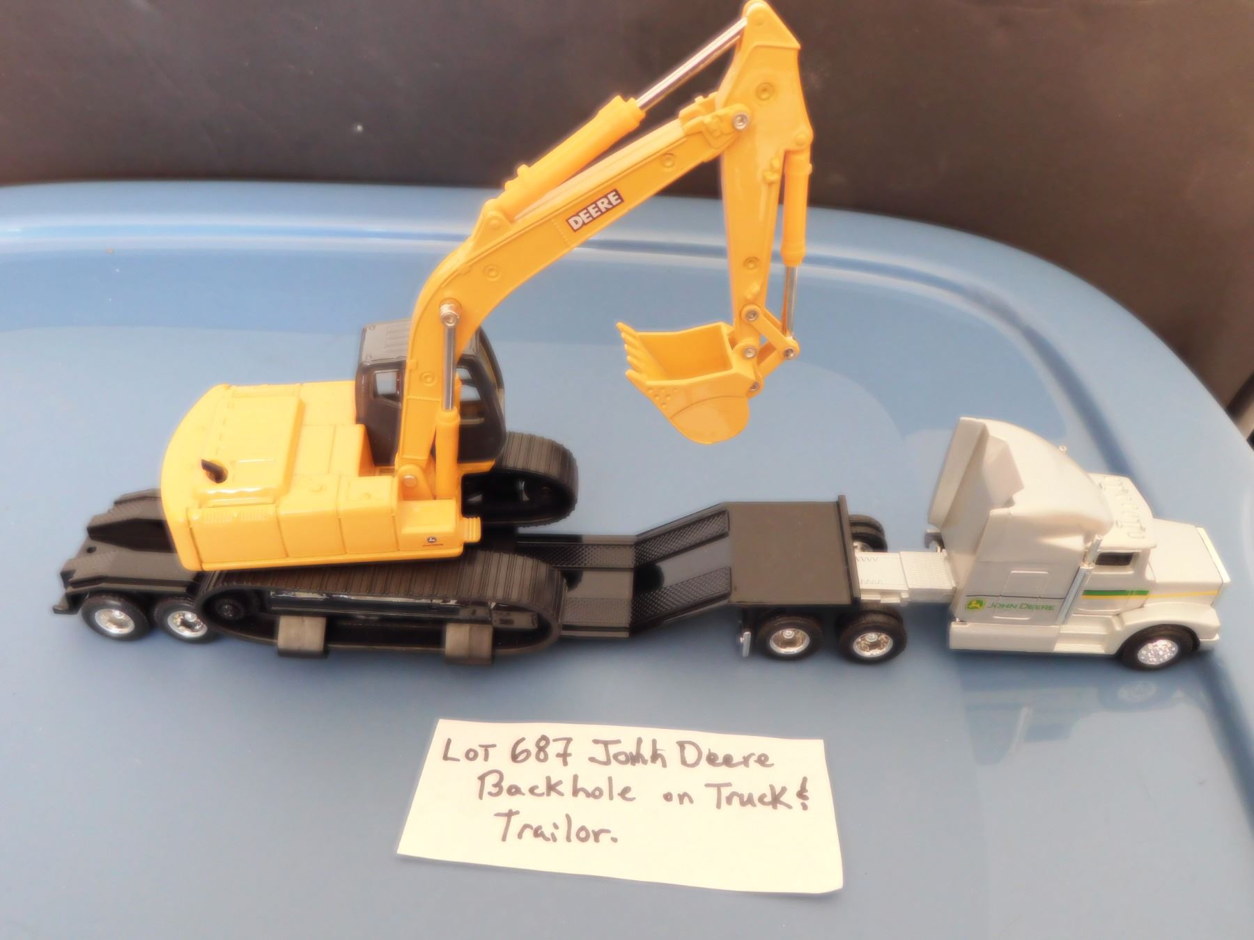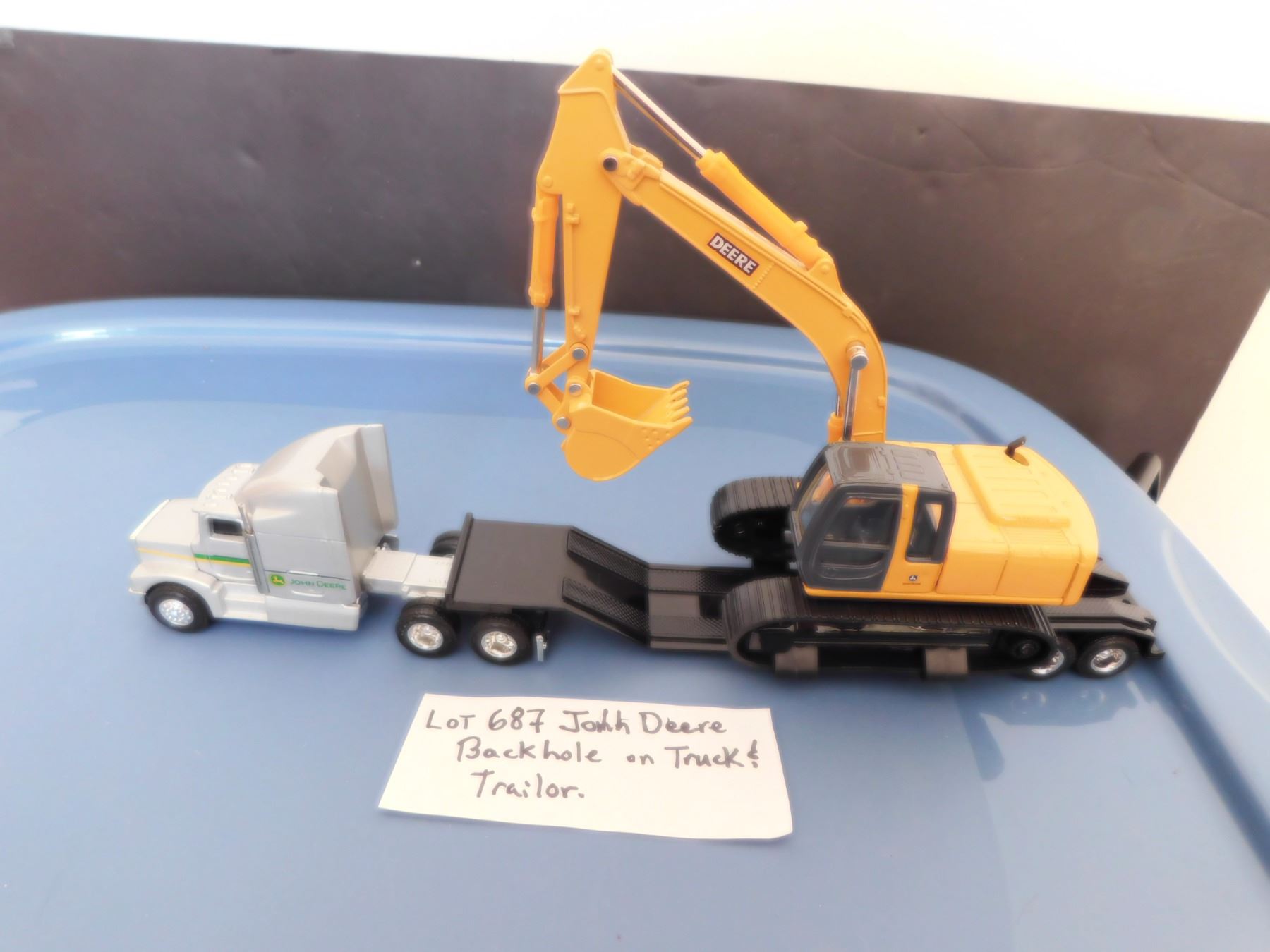 687 JOHN DEERE BACK HOE ON TRUCK & TRAILER ERTL