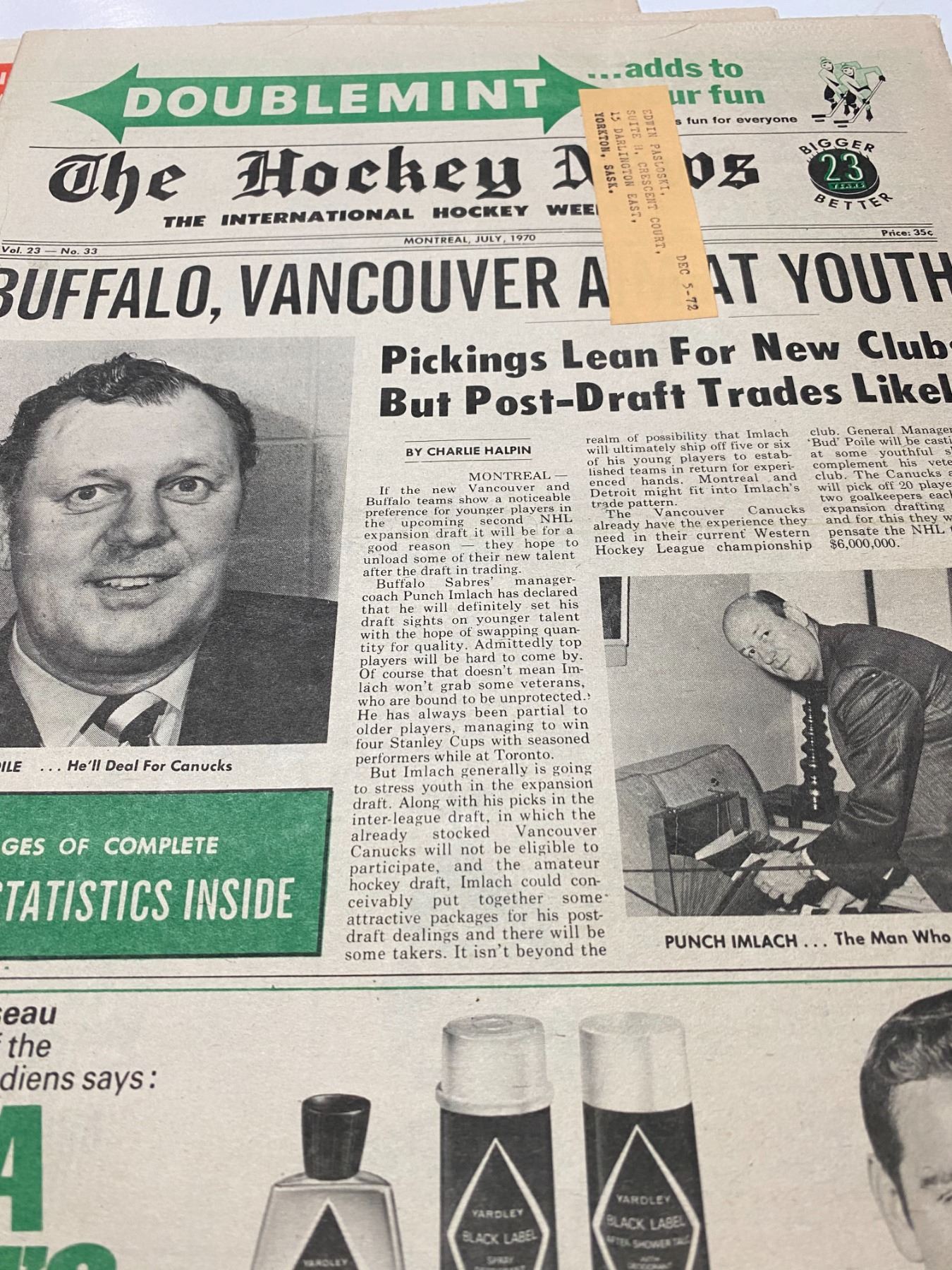 69-70 Season, The Hockey News Vol. 23 No 32-35, Smythe award to Orr