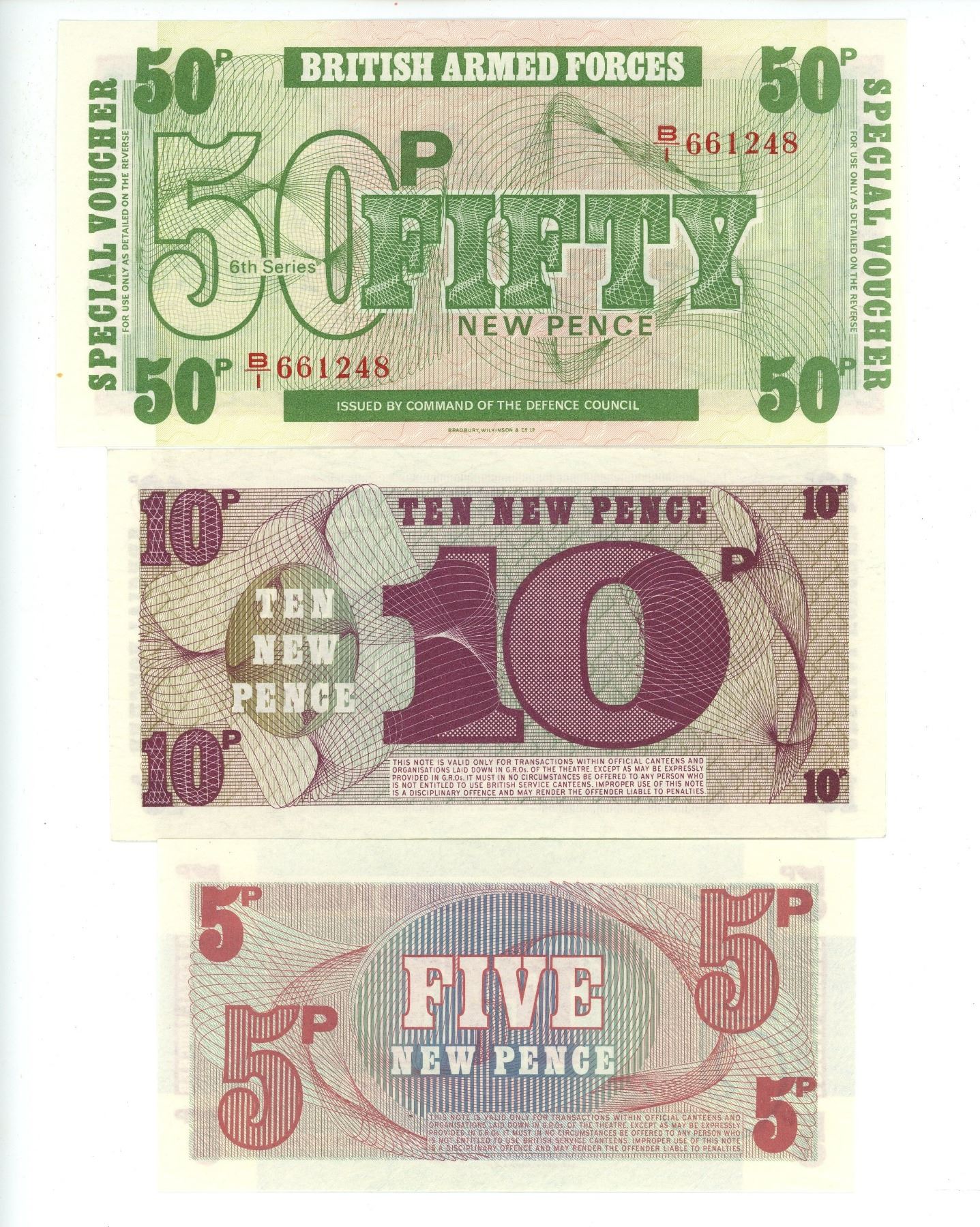 6th Series British Armed Forces 5, 10 and 50 New Pence Bill