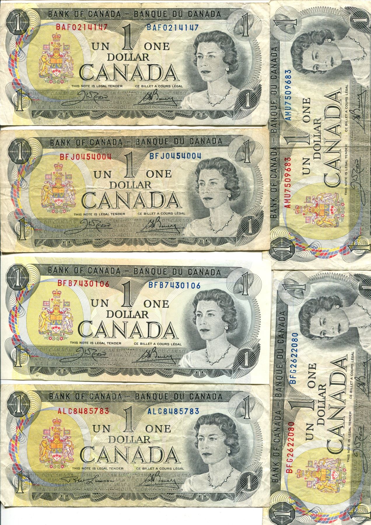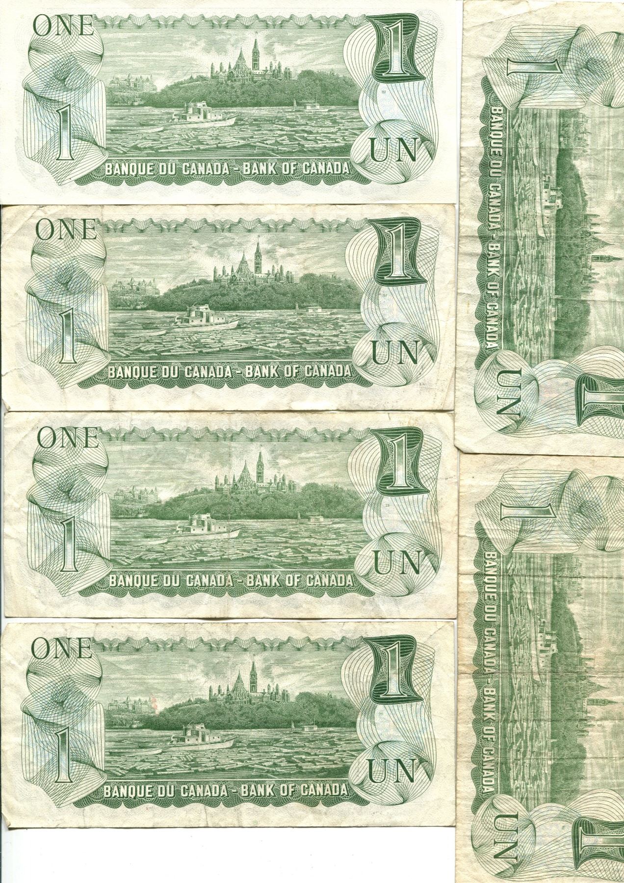 6x 1973 Canadian $1 Bills
