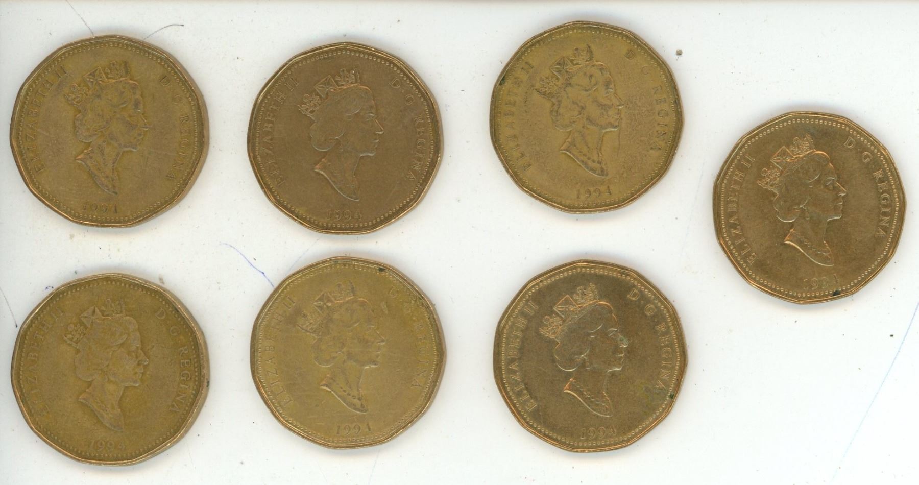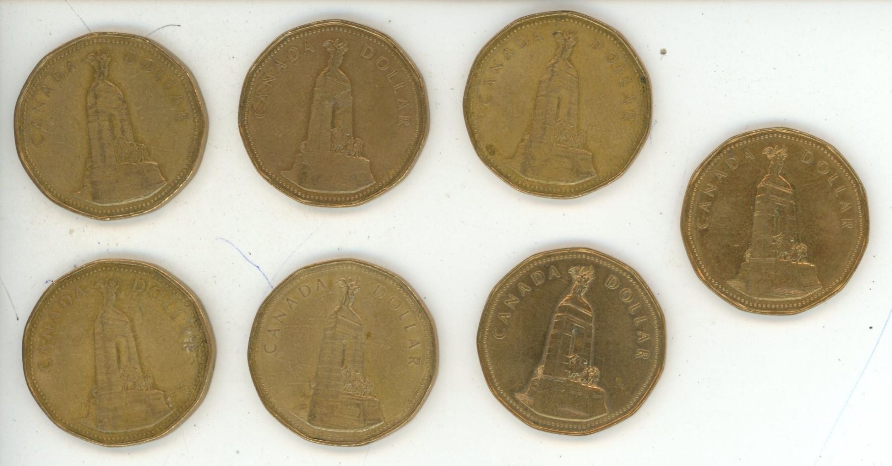 (7) 1994 National War Memorial Canadian One Dollar Coins.