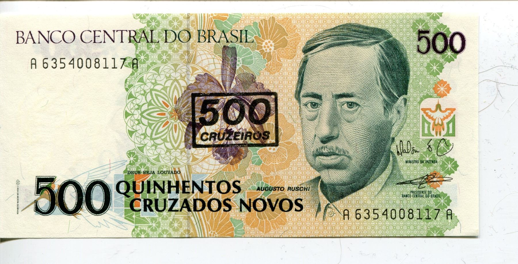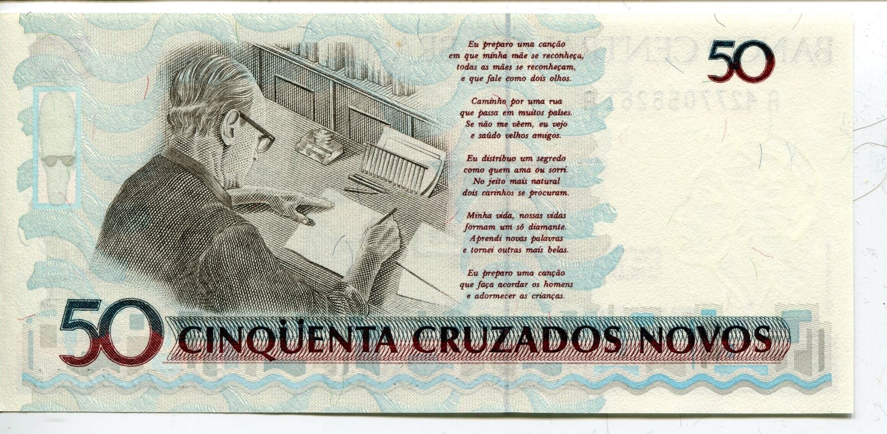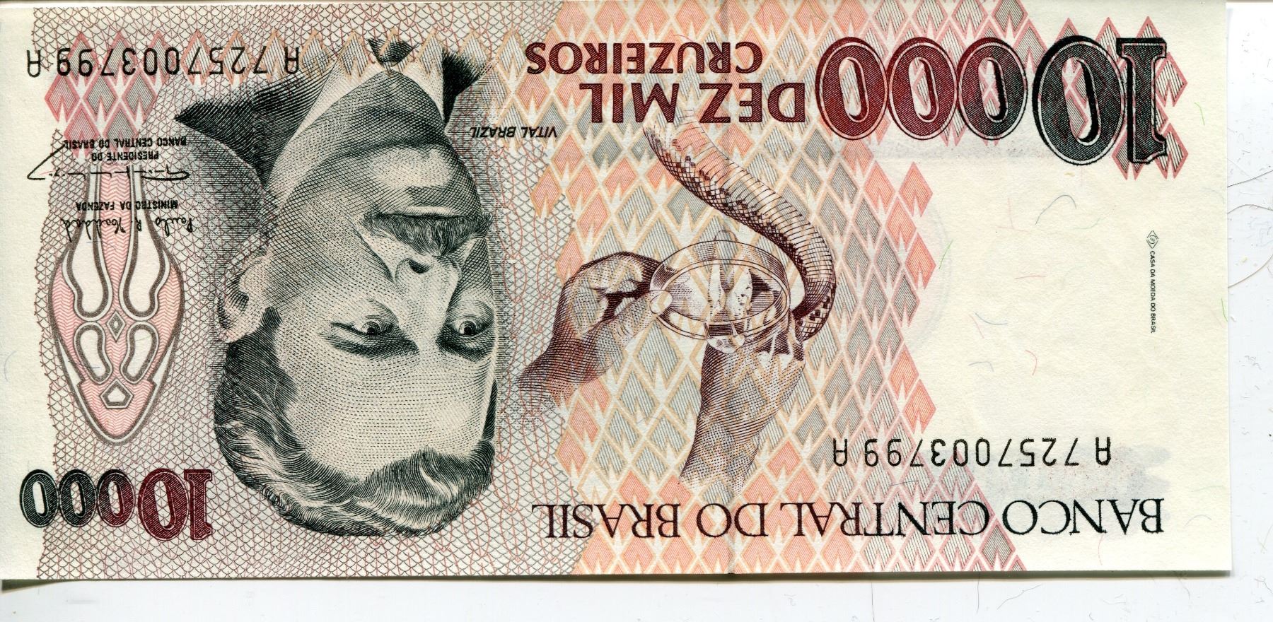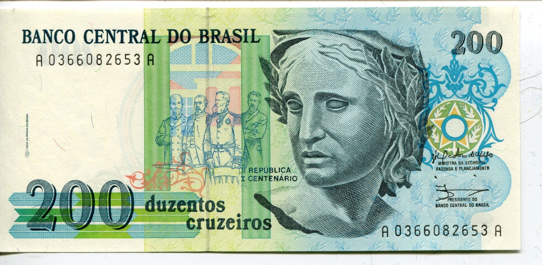 7 BANK NOTES 1, 50, 100, 200, 50, 1000, 10,000 REAIS (BRAZIL)