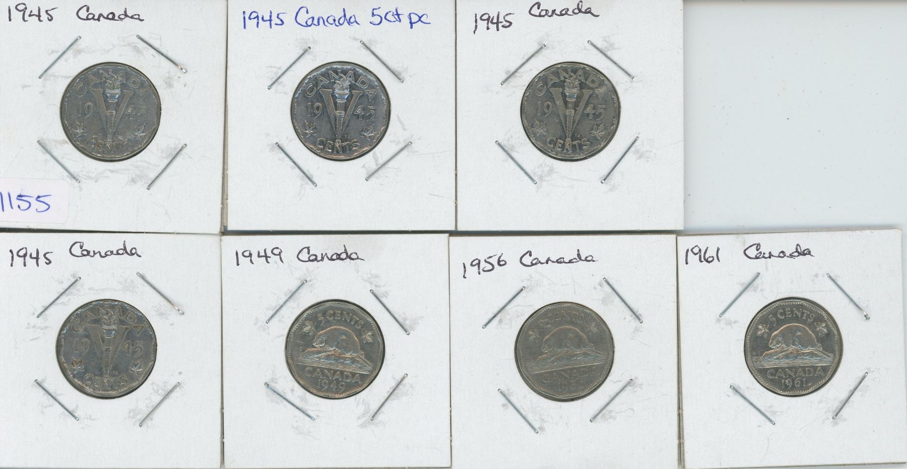 7 CANADIAN NICKLES 1945, 1949, 1956, 1961