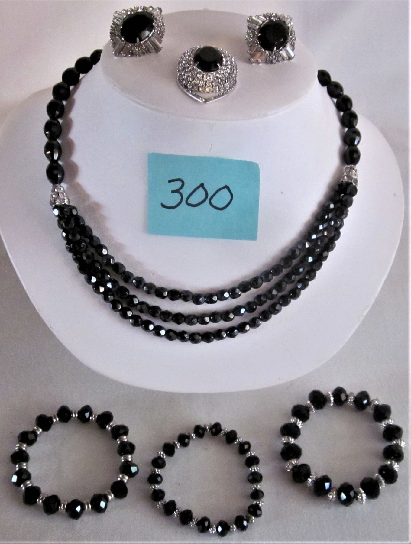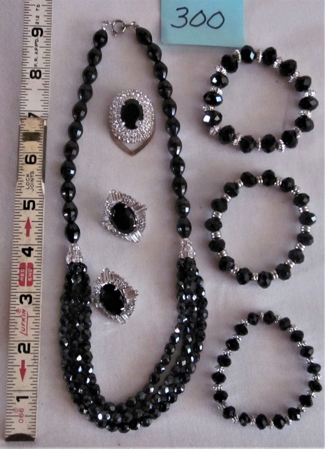 3 BRACELETS, MATCHING PIERCED EARRINGS, BROACH