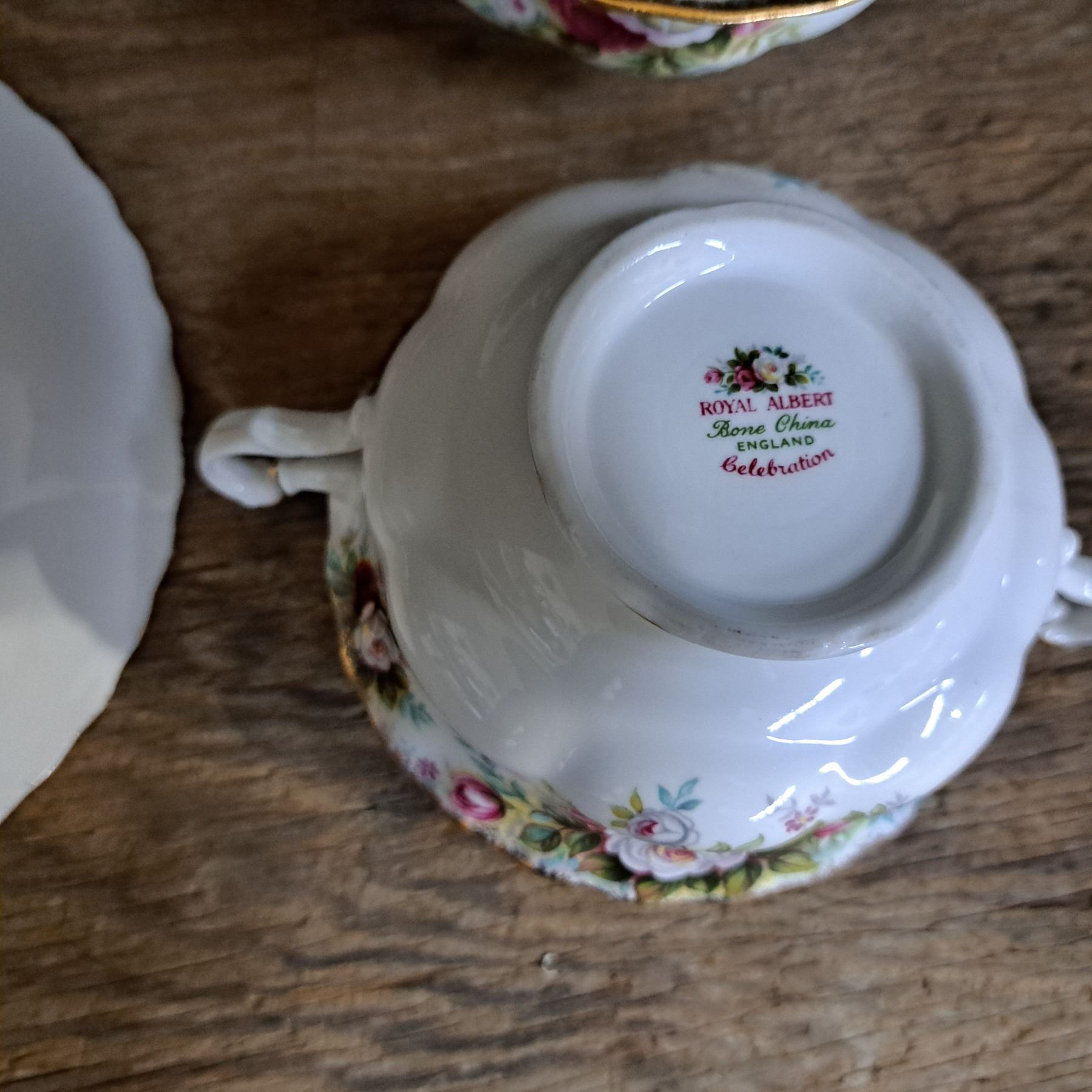 7 - Royal Albert China "Celebration" - 3 Soup Bowls, 4 Plates