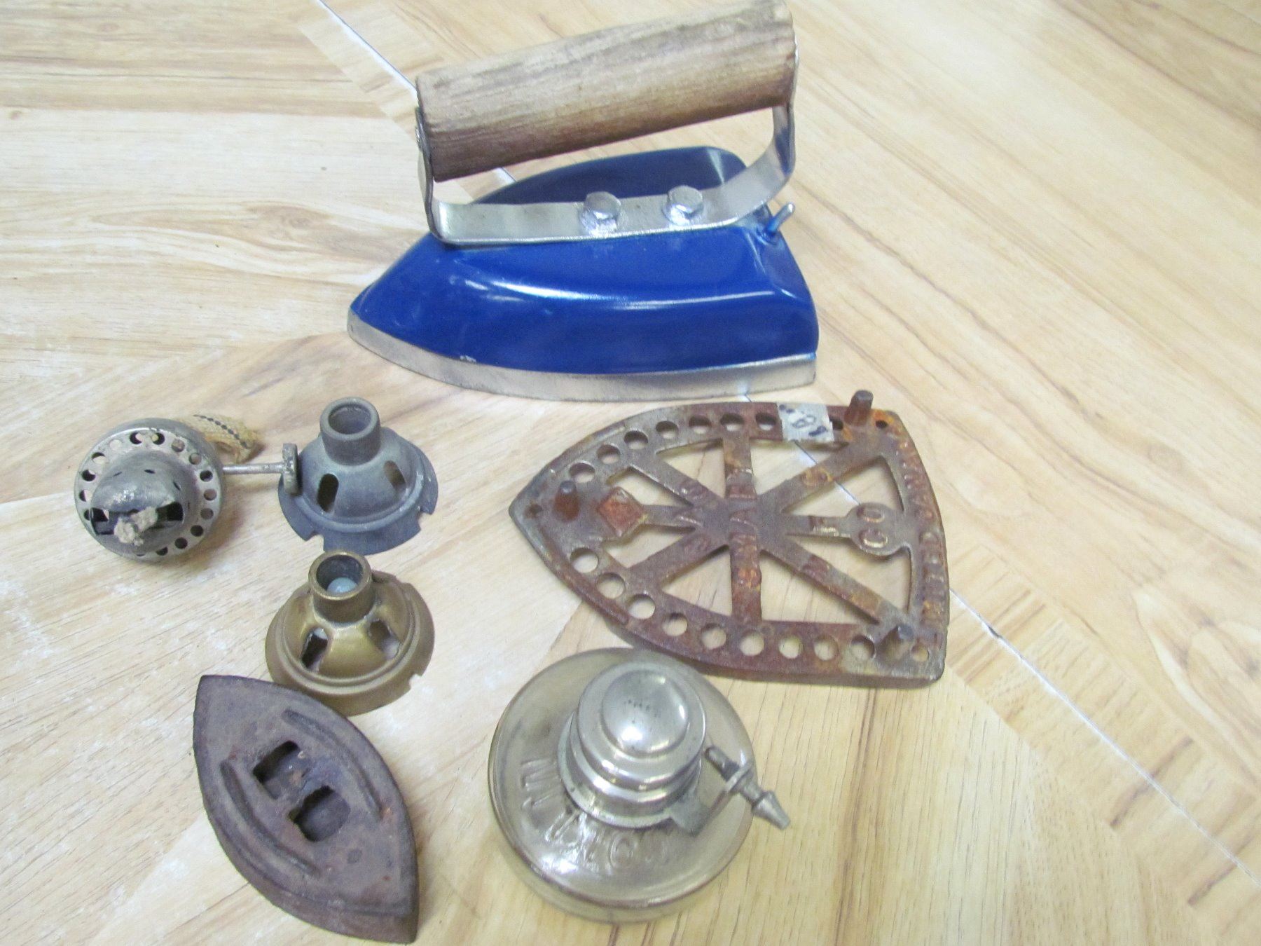 7 pieces - Irons, Acc., Lamp parts, Minature Iron