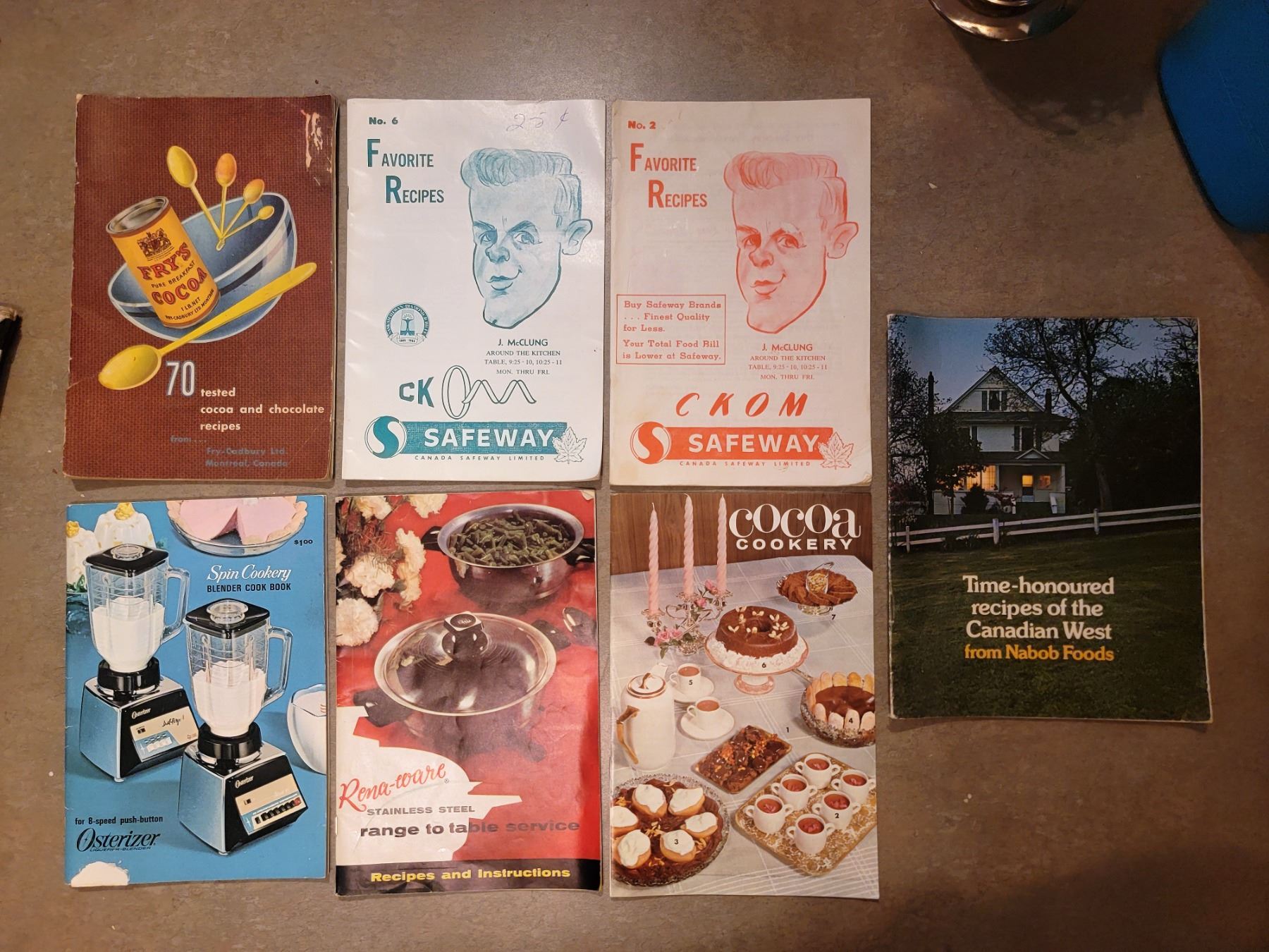7 vintage cookbooks - Fry's Cocoa, Safeway, Nabob, Rena-ware