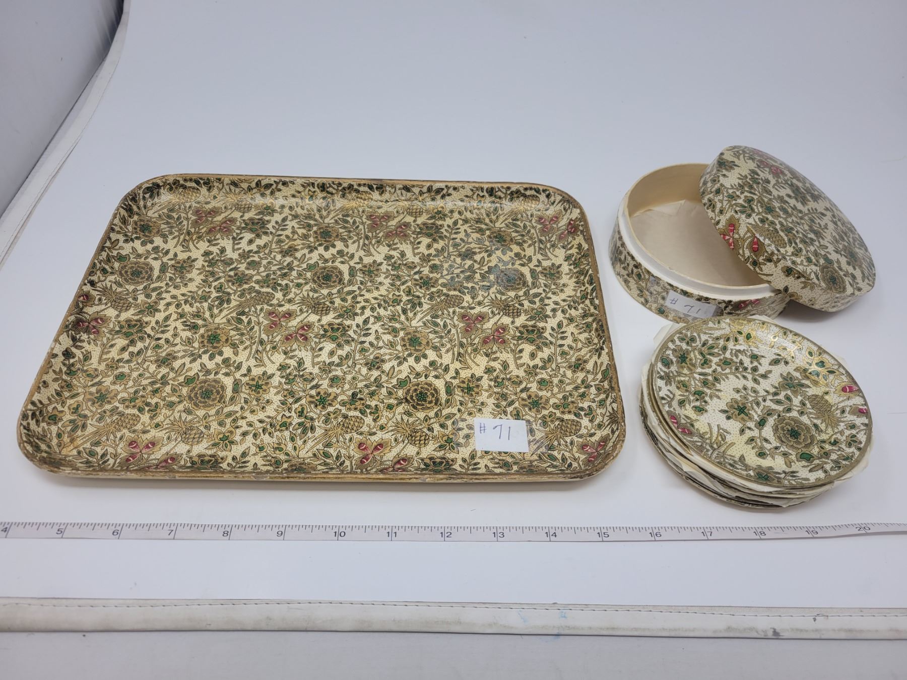 71. Drink tray and coasters, marked “Alcohol Proof”, Japan