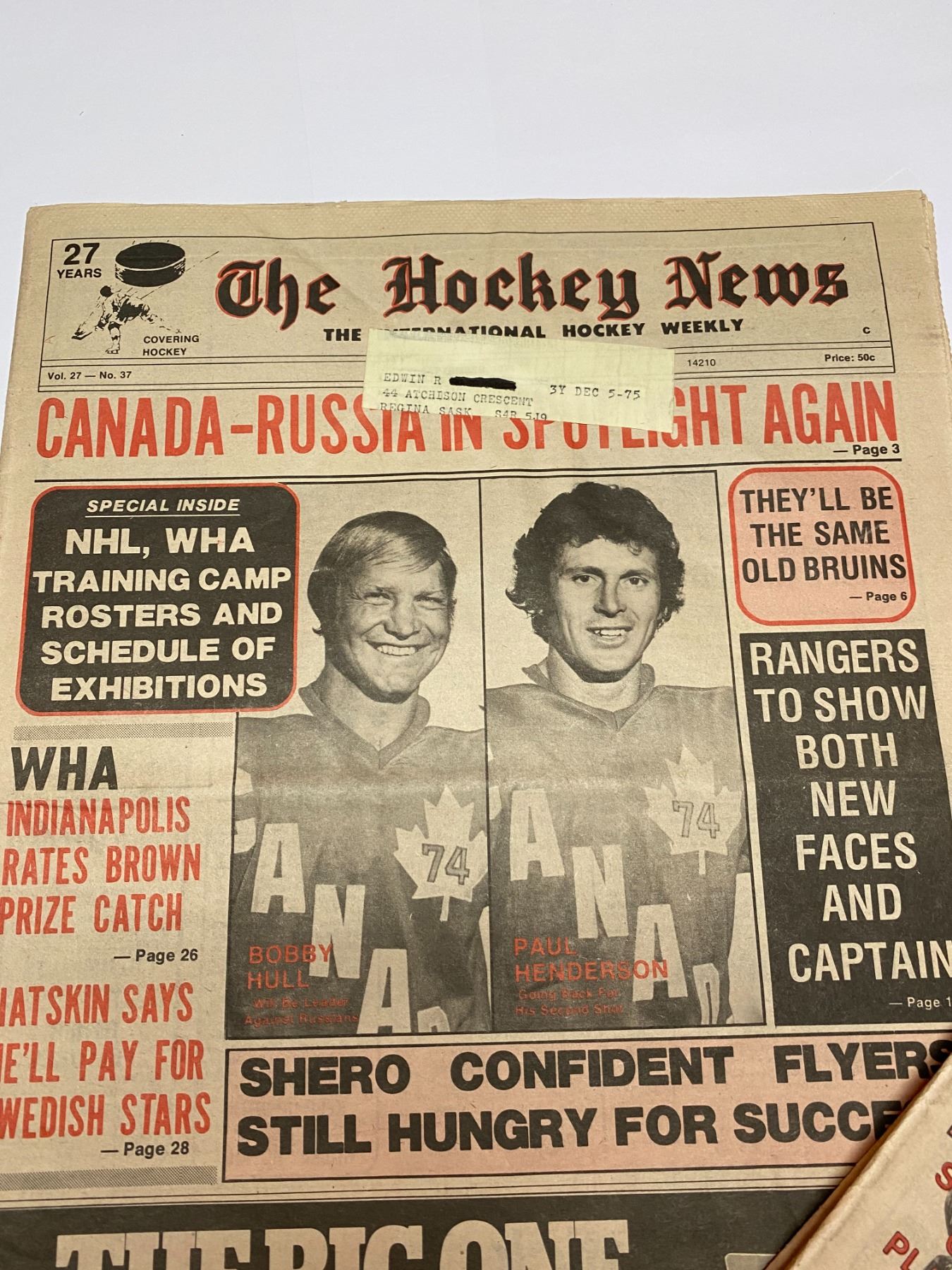 73-74 Vol 27 No 33-37 Hockey News Flyers Win Canada Russia in Spot Light Again