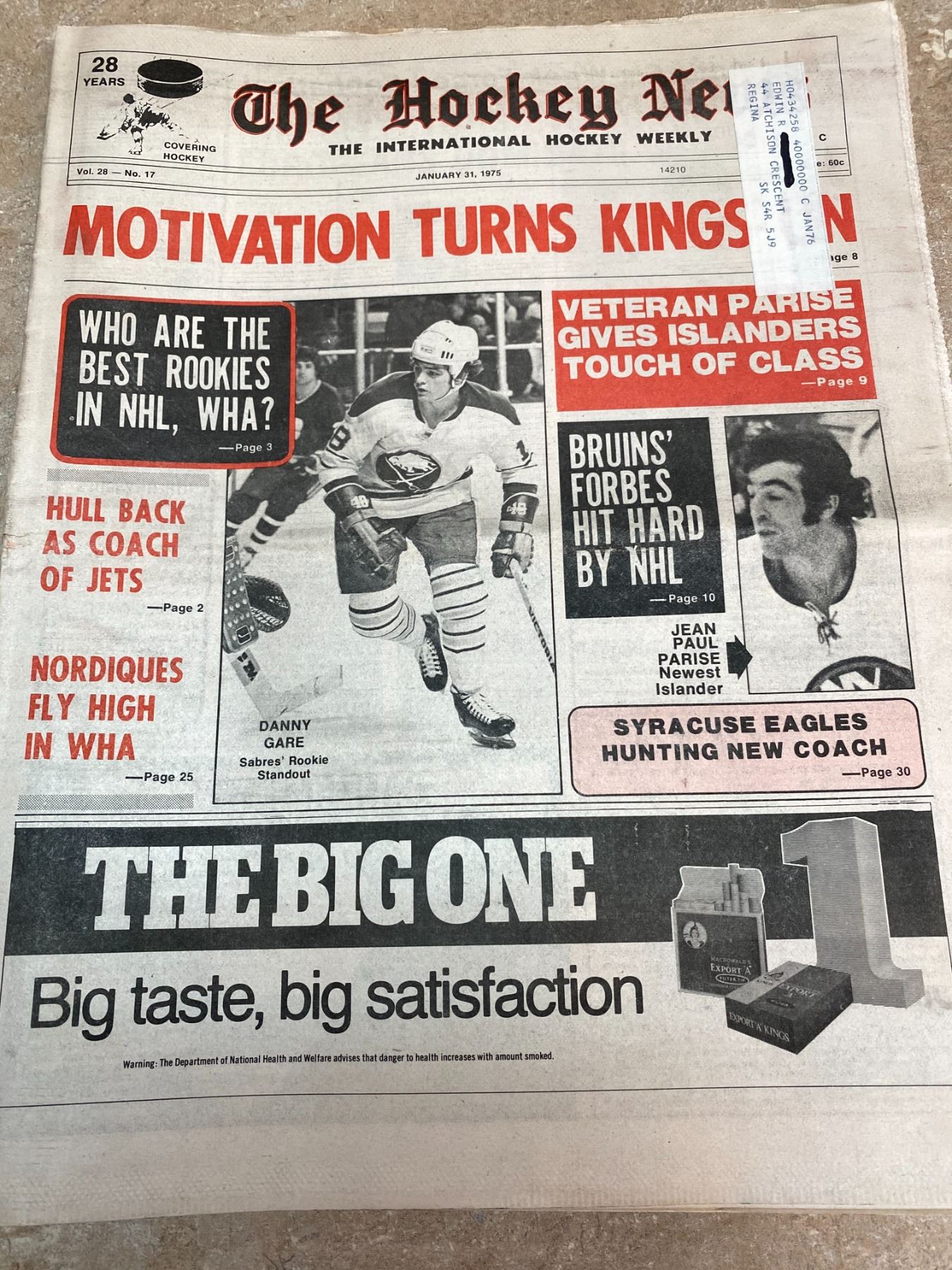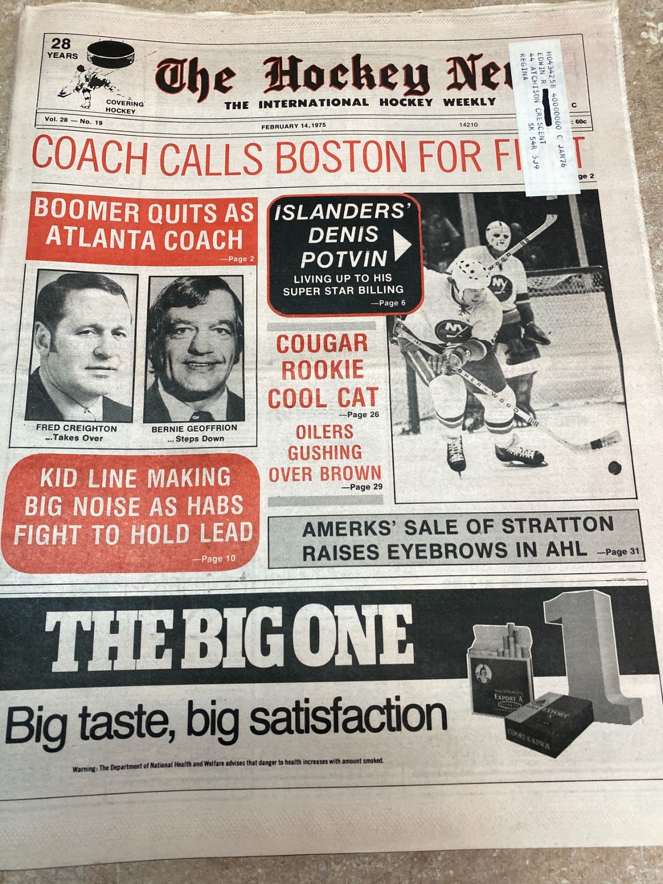 74-75 Vol 28 No 16-20 The Hockey News Stan Mikita Scores 450th Goal Hull Back as Coach of Jets