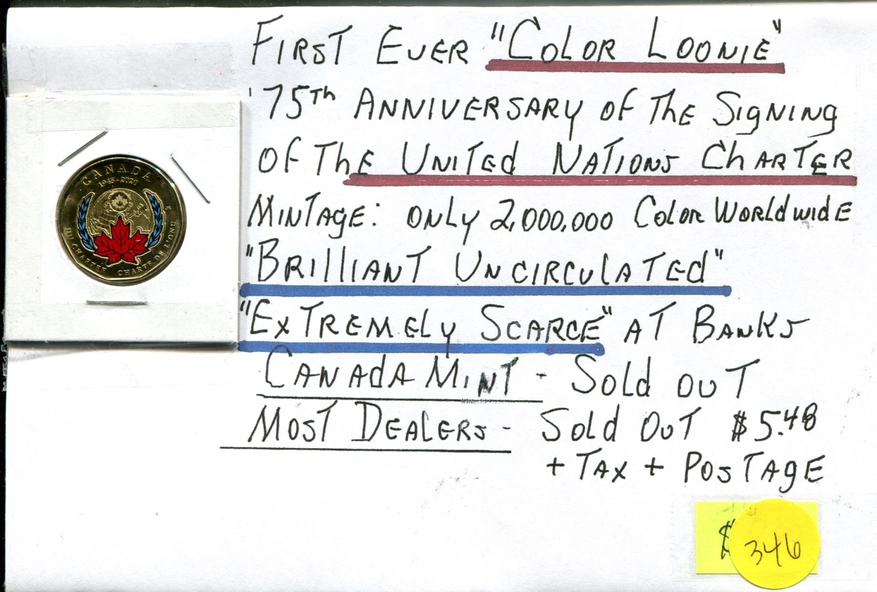75th Anniversary of the UN Charter Coloured Canadian Loonie