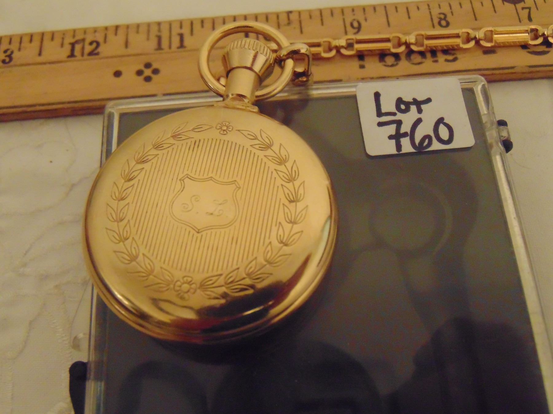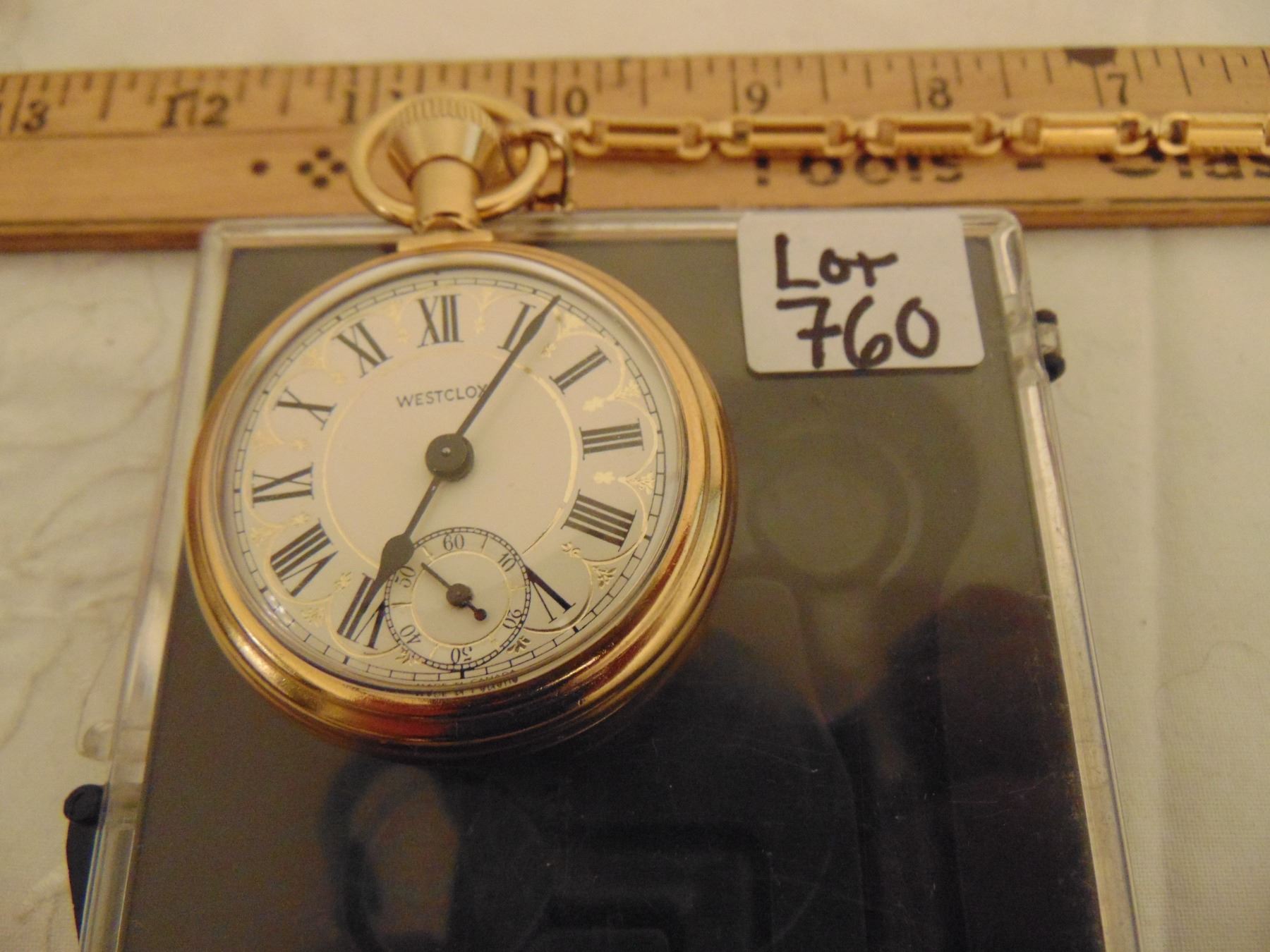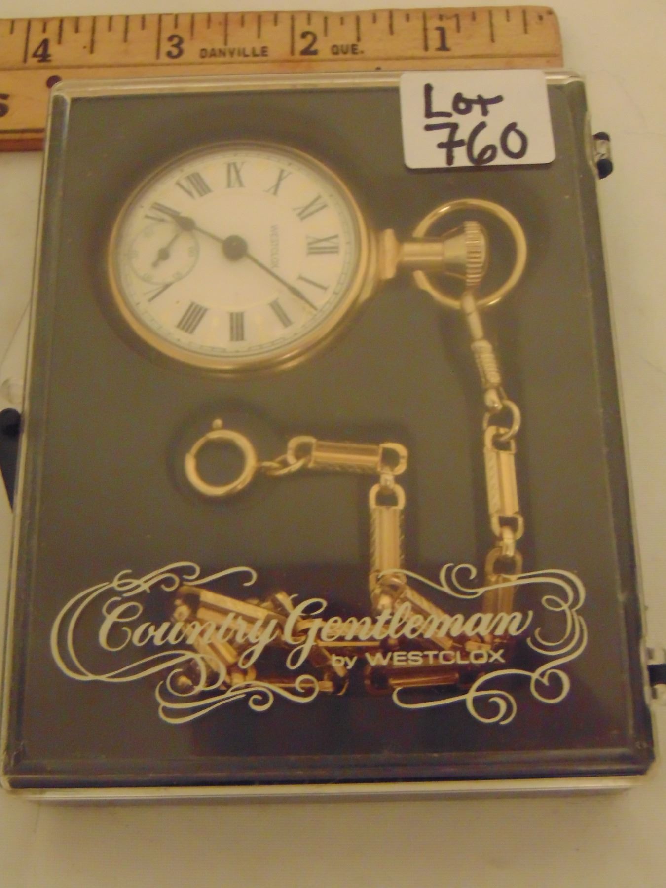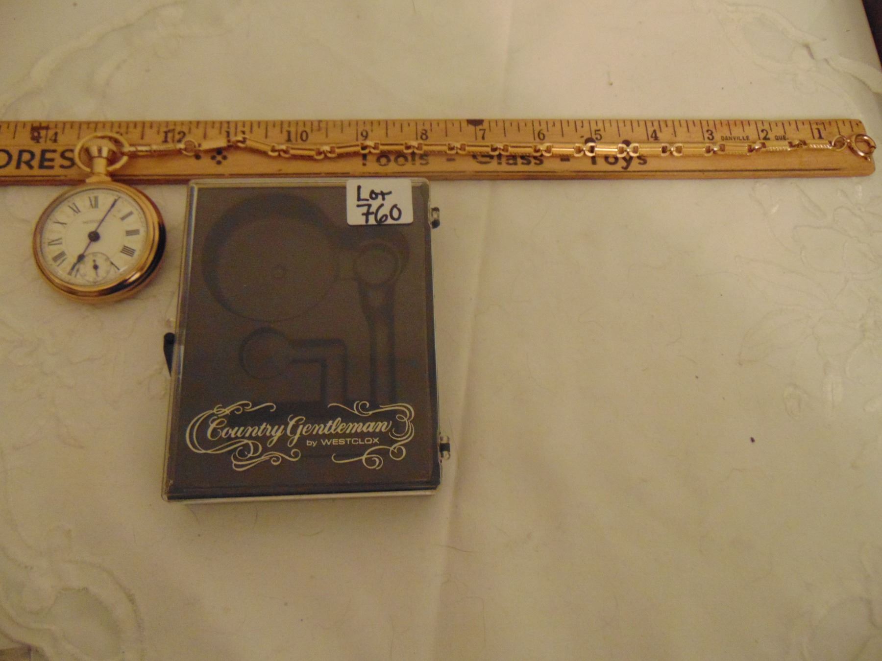 760 COUNTRY GENTLEMAN BU WESTCLOX POCKET WATCH GOLD TONE RUNS WELL