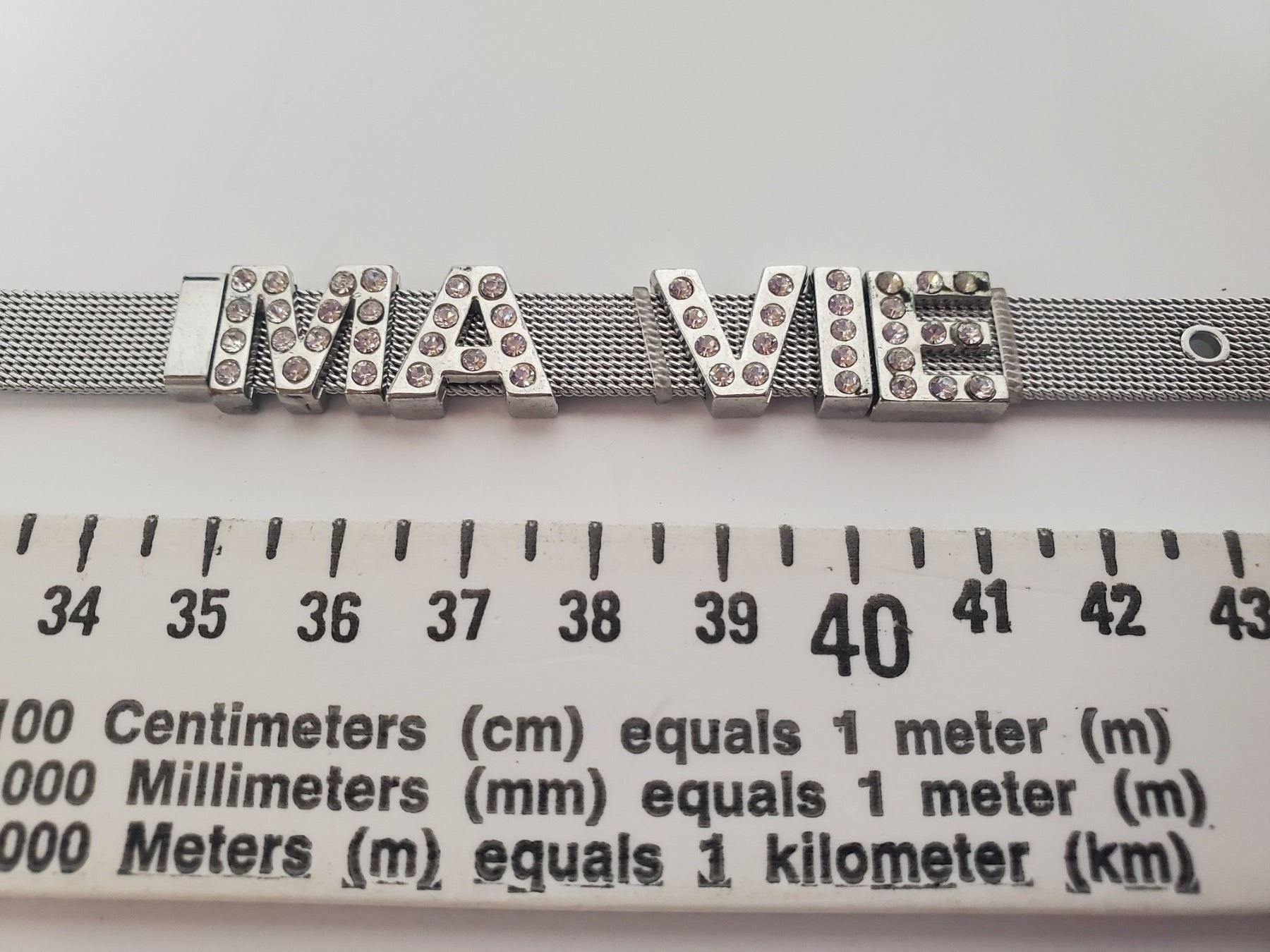 762. Silver tone designer mesh bracelet, “Ma Vie”