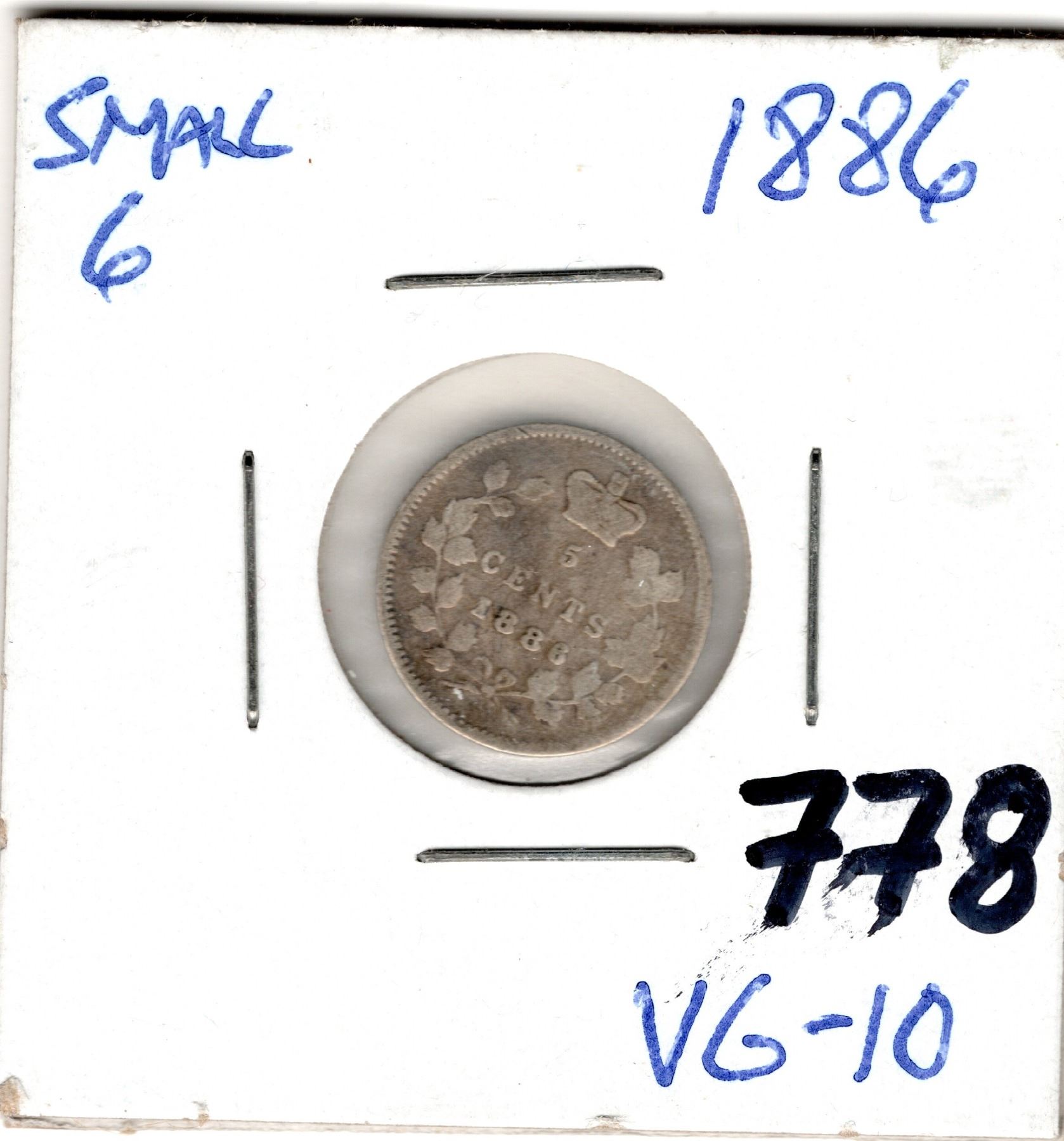 778. 1886 SMALL 6 FIVE CENT