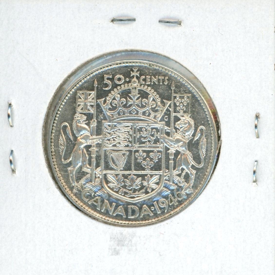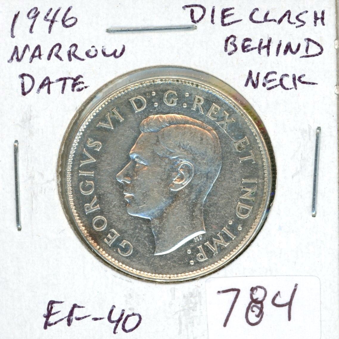1946 Narrow Date Silver 50 Cents with Die Clash behind the King’s Neck. EF-40. Cool variety.