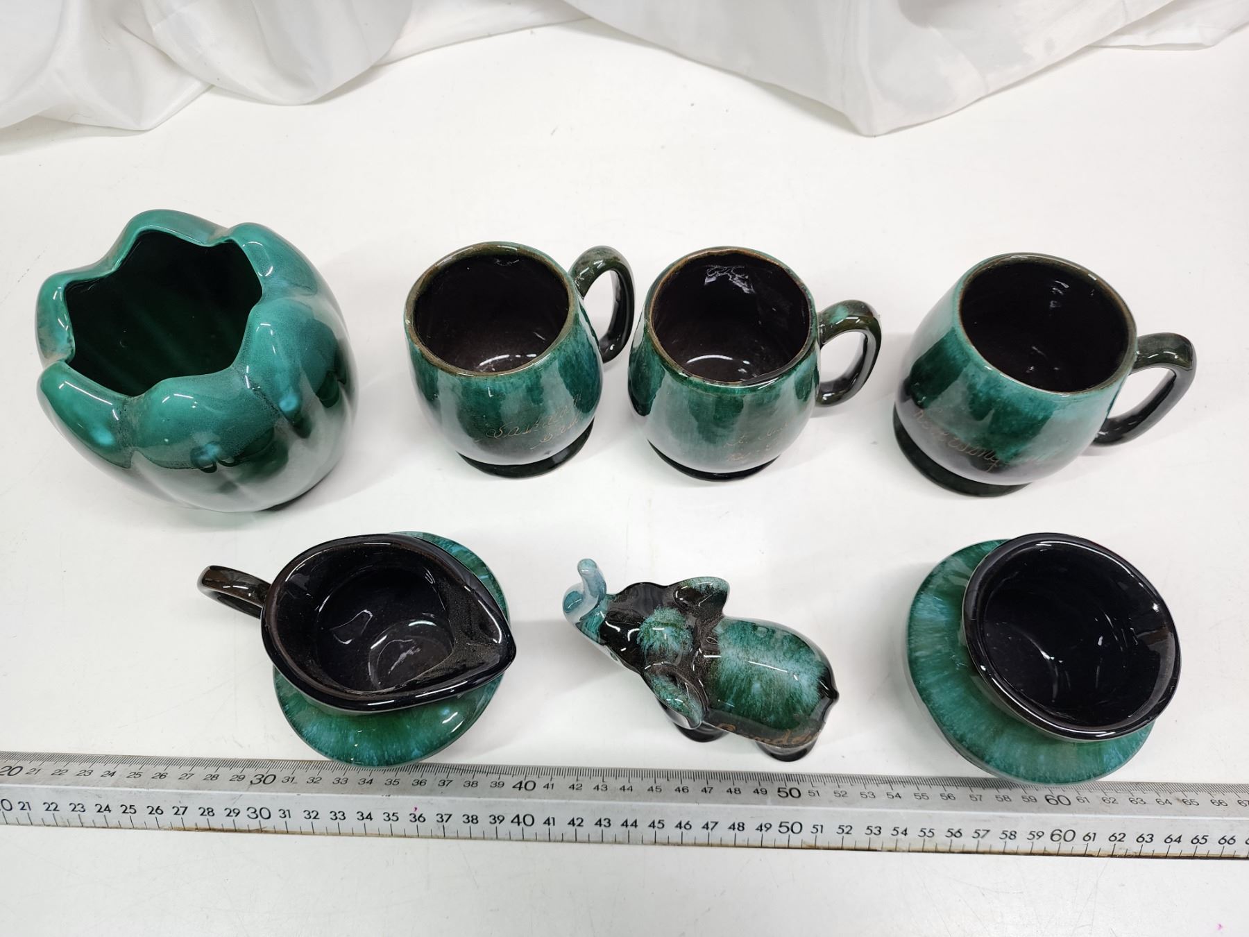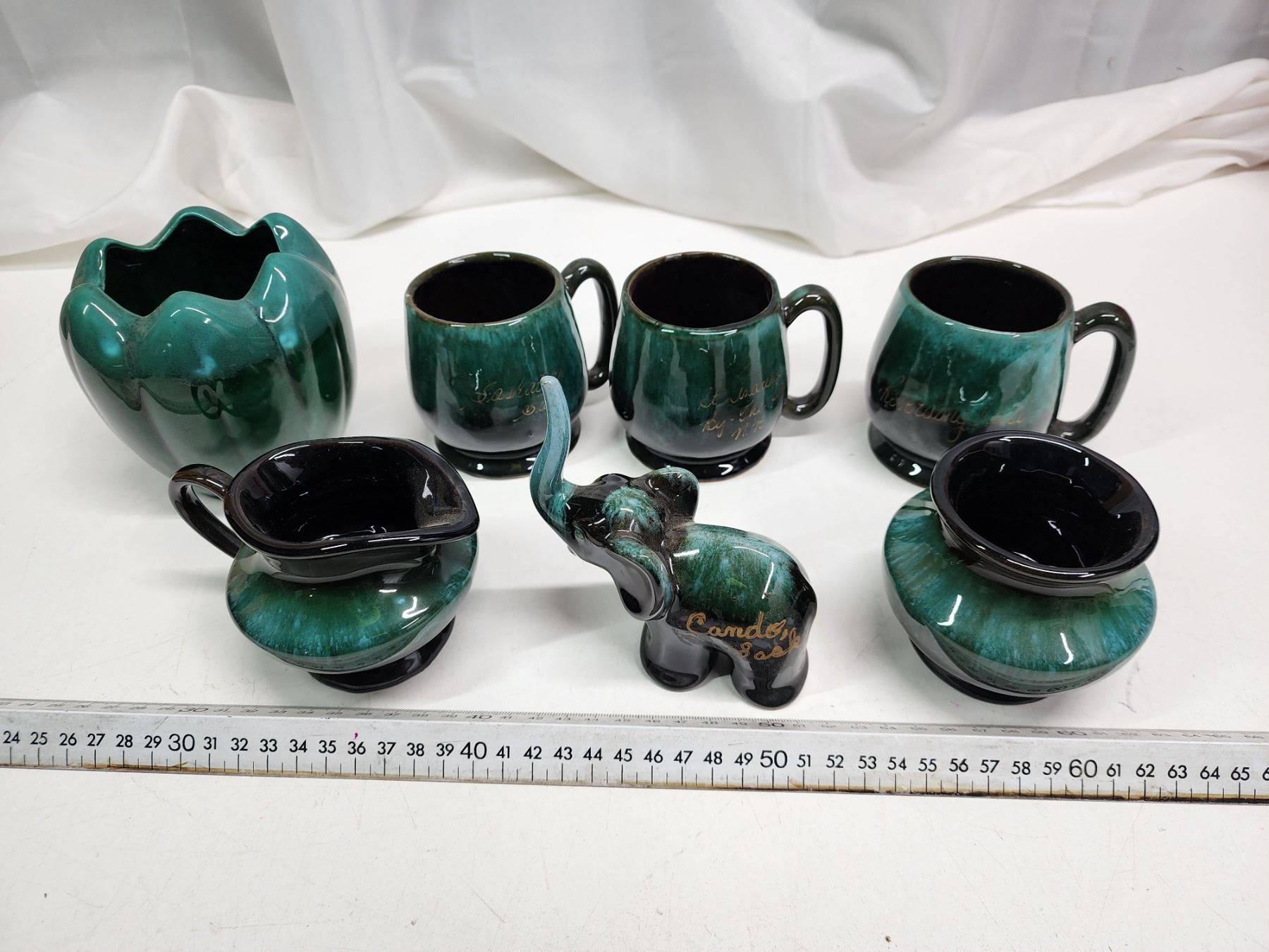 7pcs of Blue Mountain pottery - Cream n Sugar, 3 mugs, vase and elephant