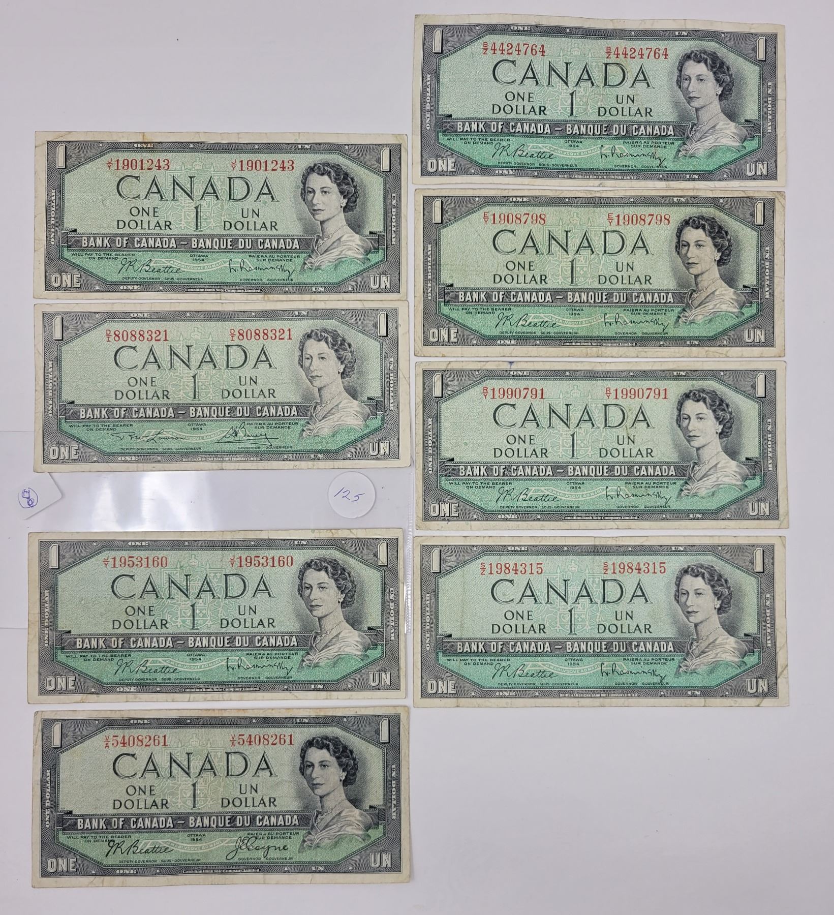 8 1954 Canadian $1.00 bills