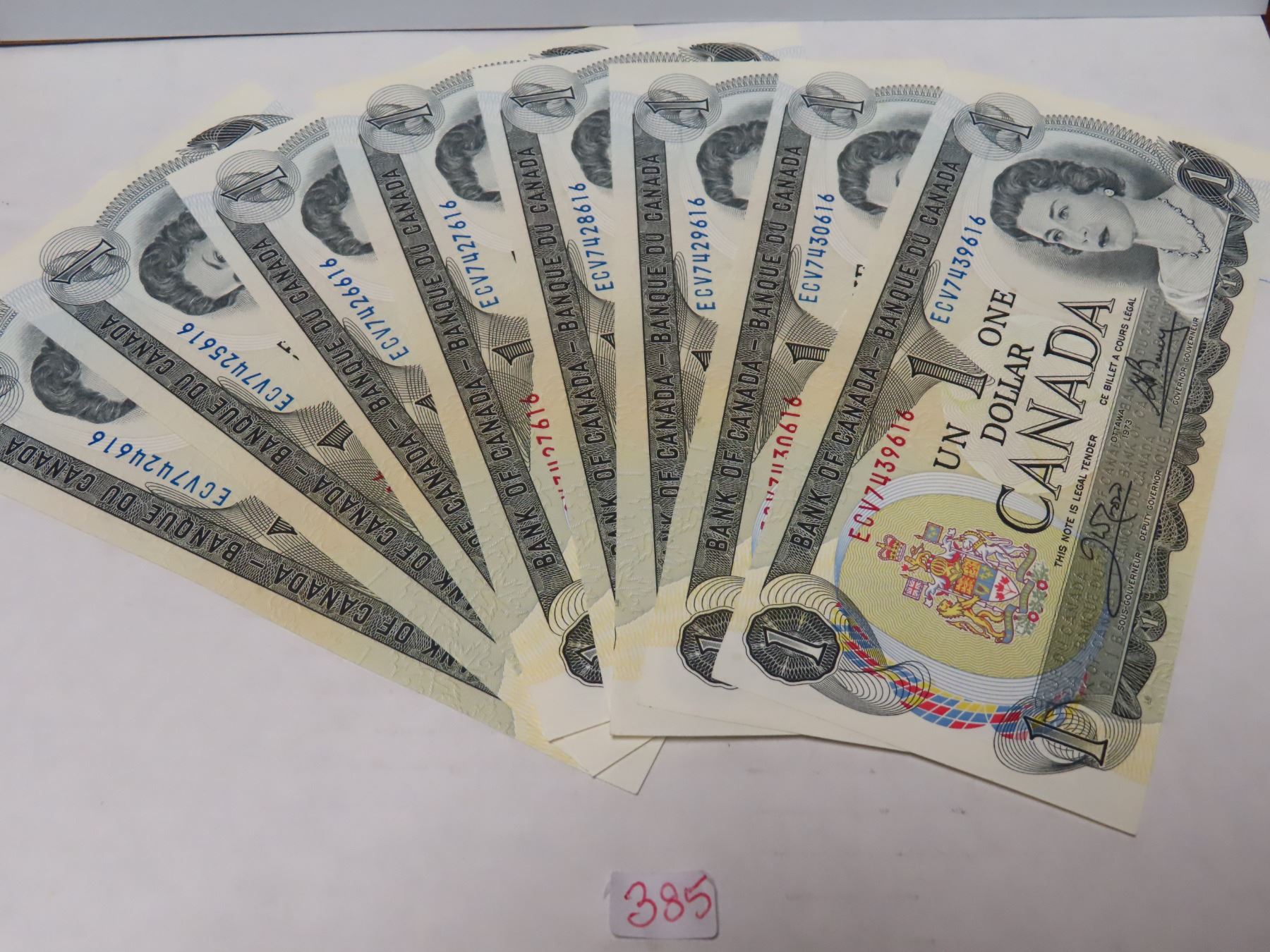 8 1973 canadian 1 dollar bills