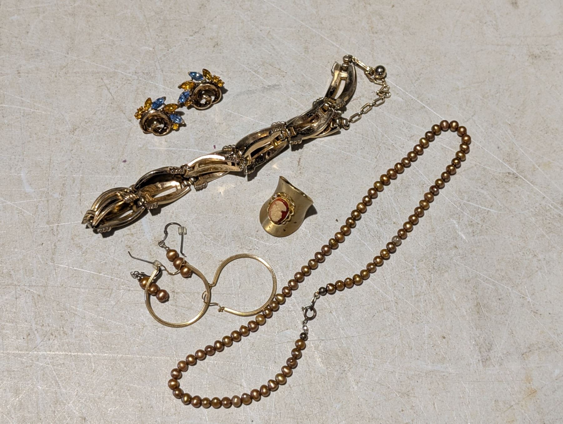 8.5" Pearl Shapes chocolate Pearls w/ Drop Earrings stamped .925 Silver