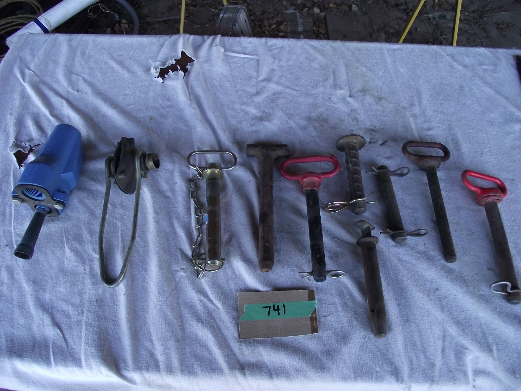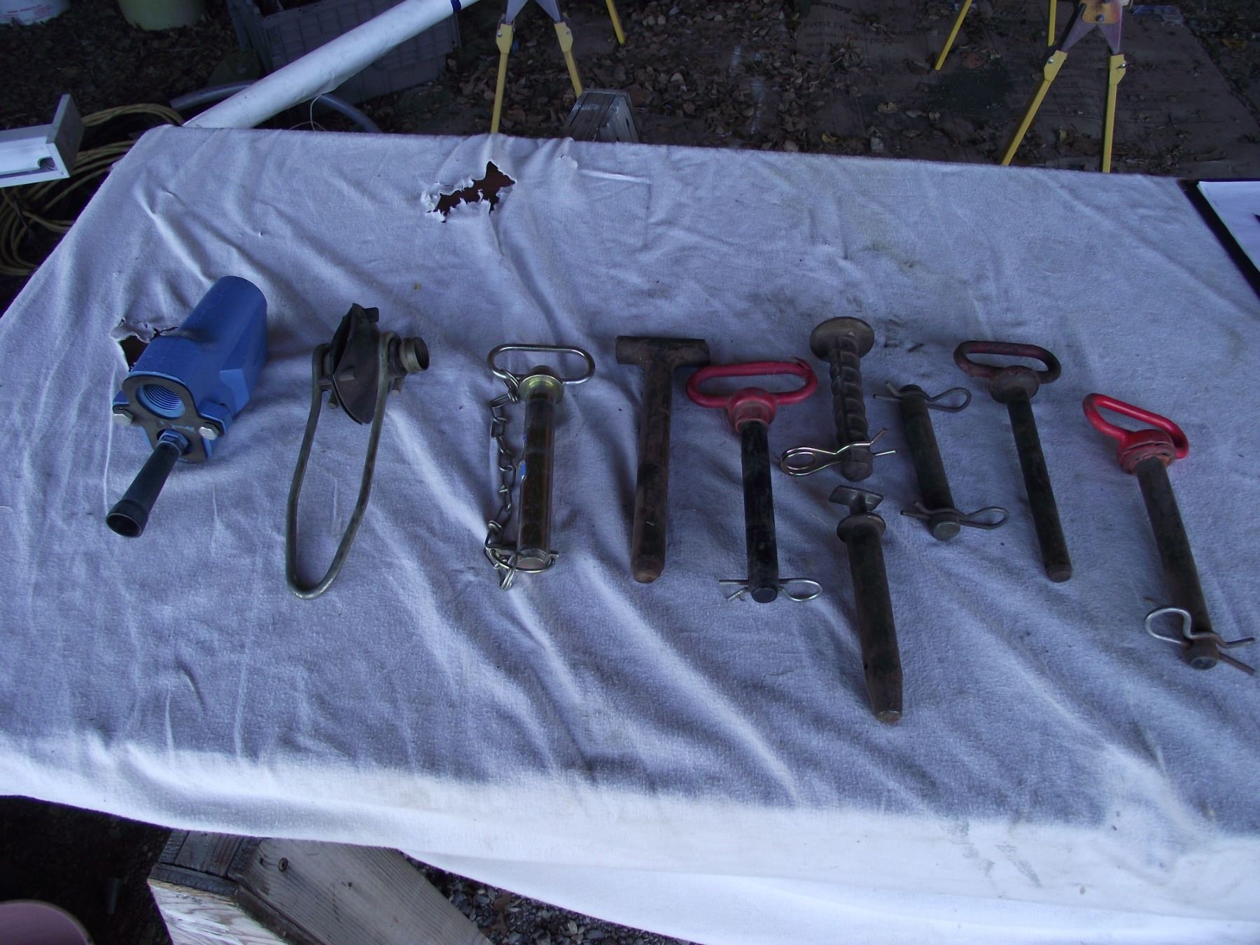 8- Assorted hitch pins, 1- jet pump orifice (new) and 1- boat motor test muff.