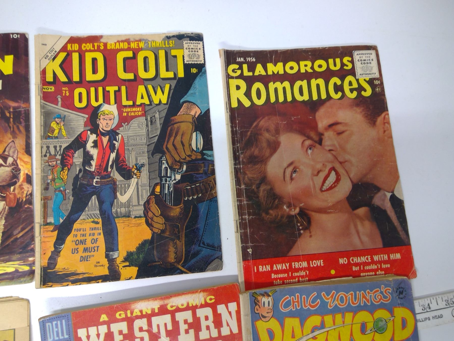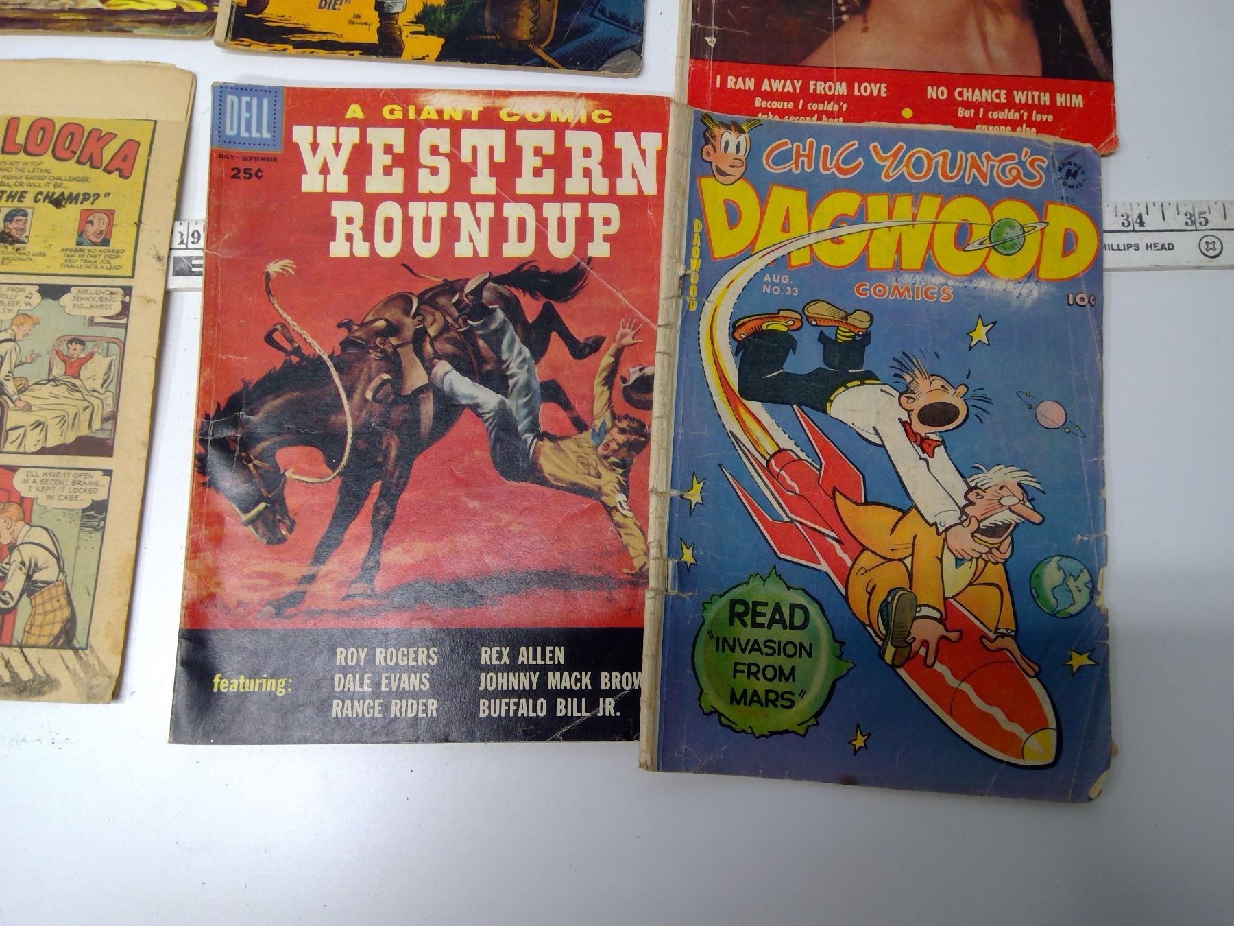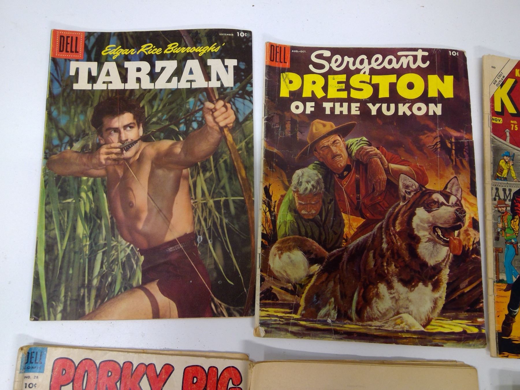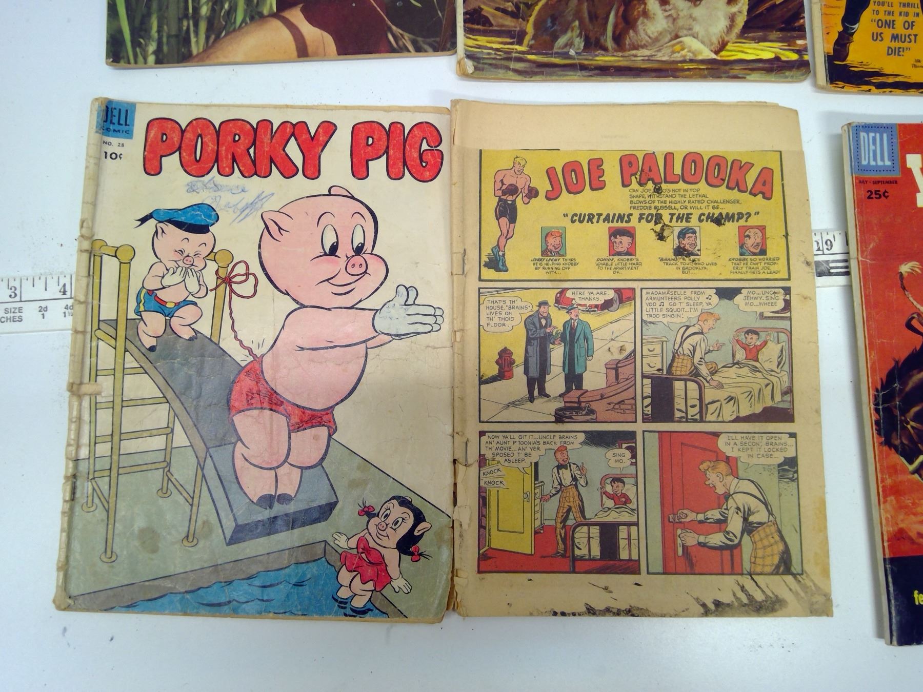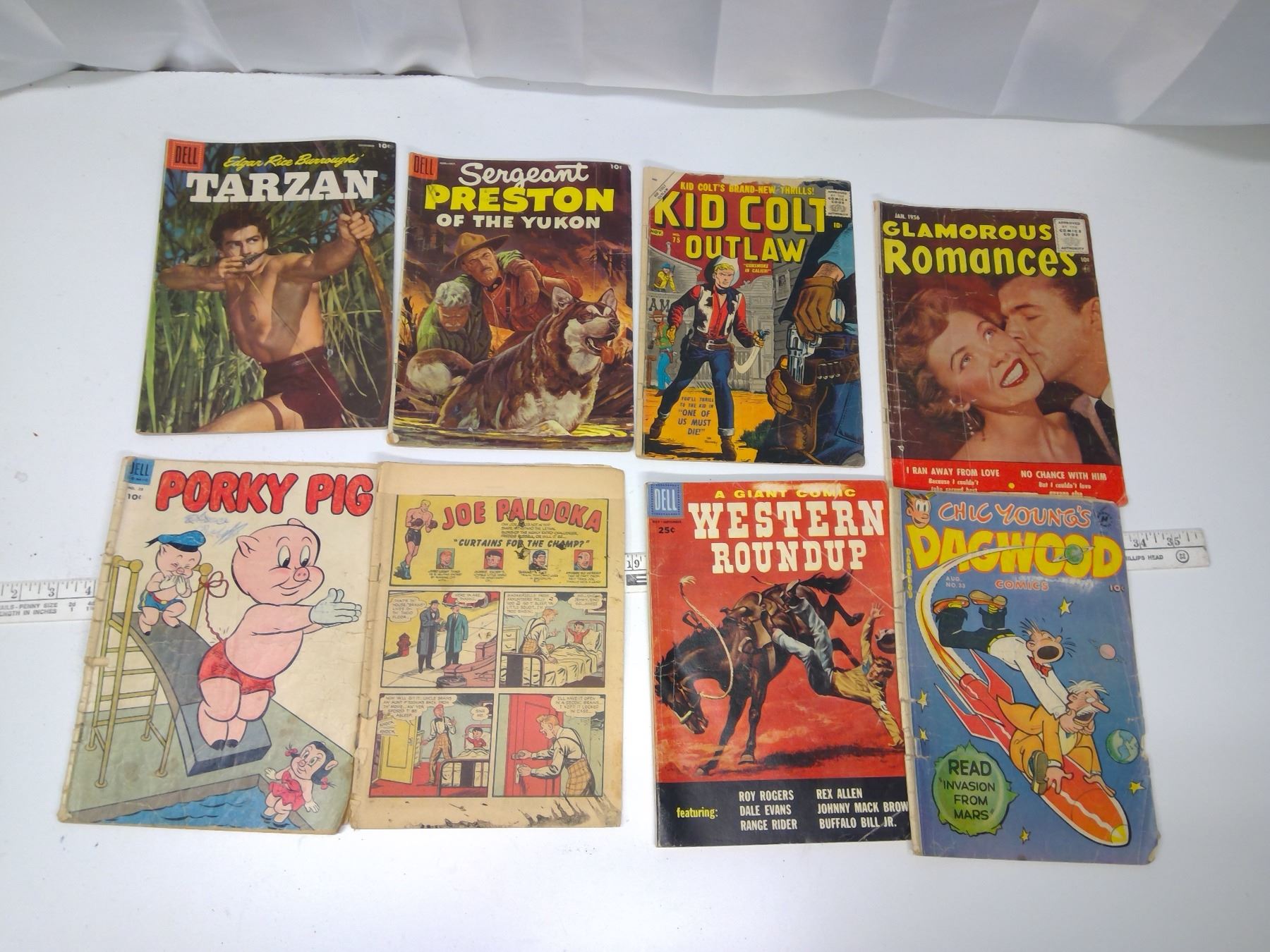 8 Comics - Tarzan, Sgt. Preston, Kid Cold, Western Roundup, Porky Pig, Joe Palooka, Chic Young