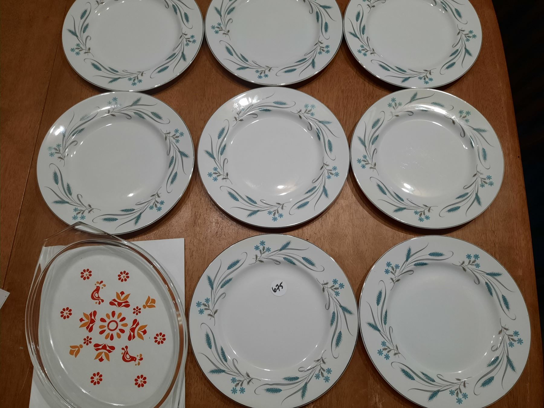 8 Dinner Plates Snow White Johnson Bros, Pyrex Lid