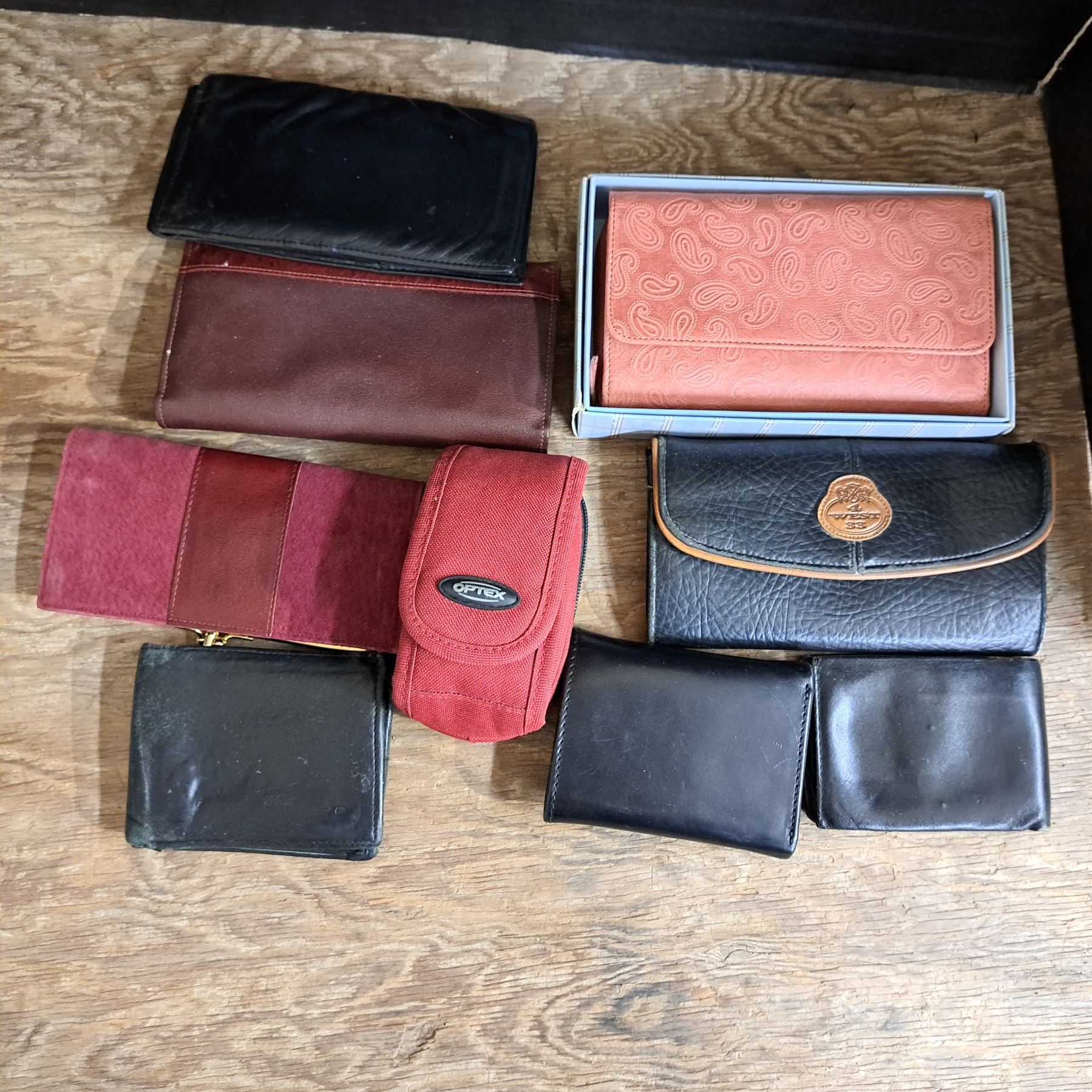 8 Leather Wallets, his & hers, 1 NWT in box $40.00, 1 New "Daktoka" Wallet, + Belt Loop Wallet