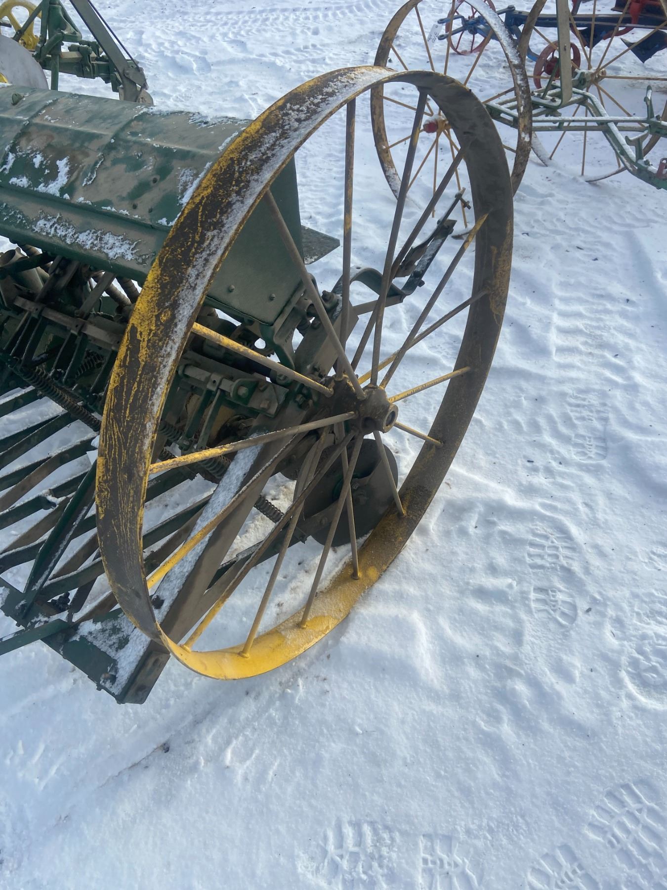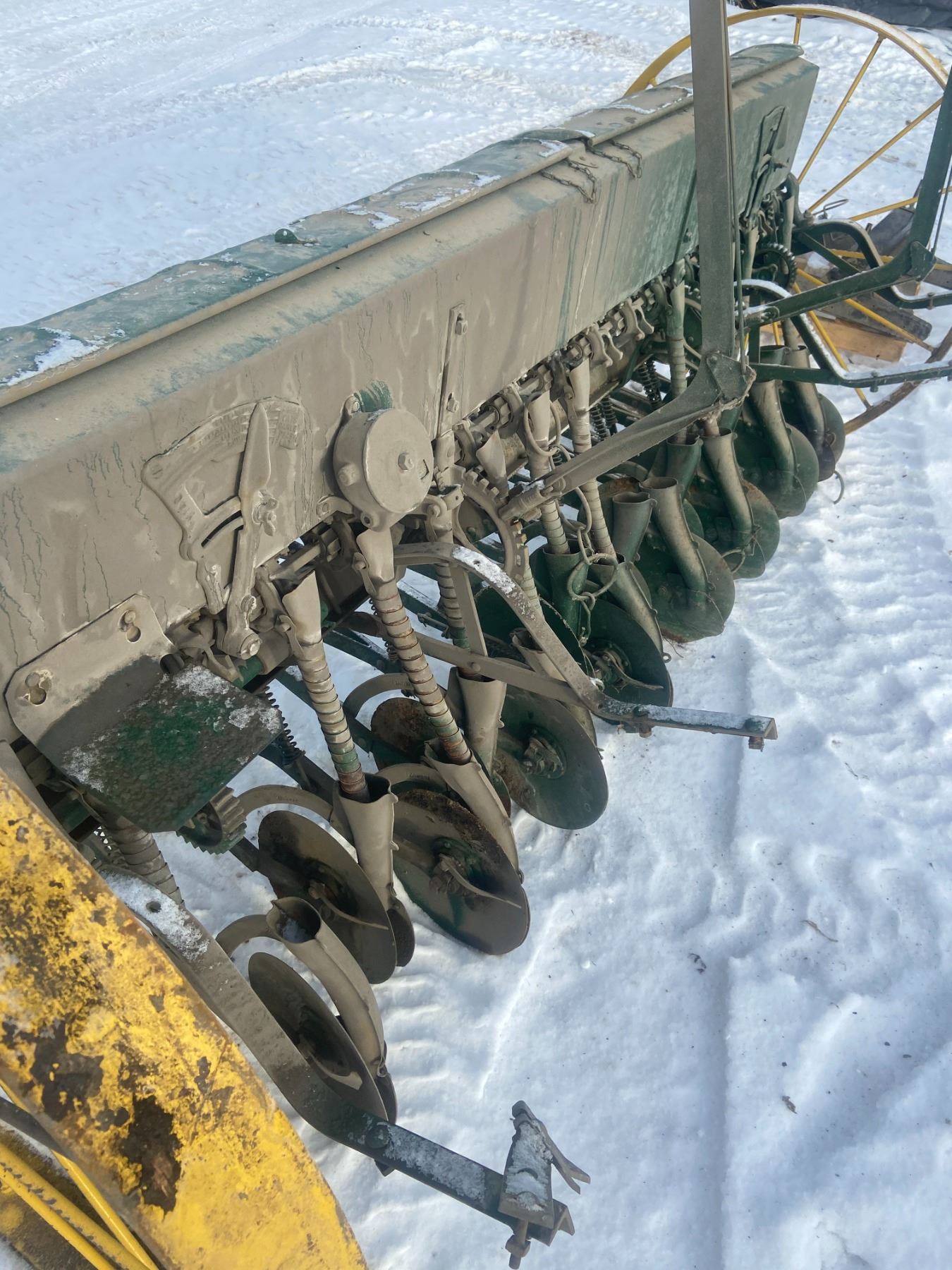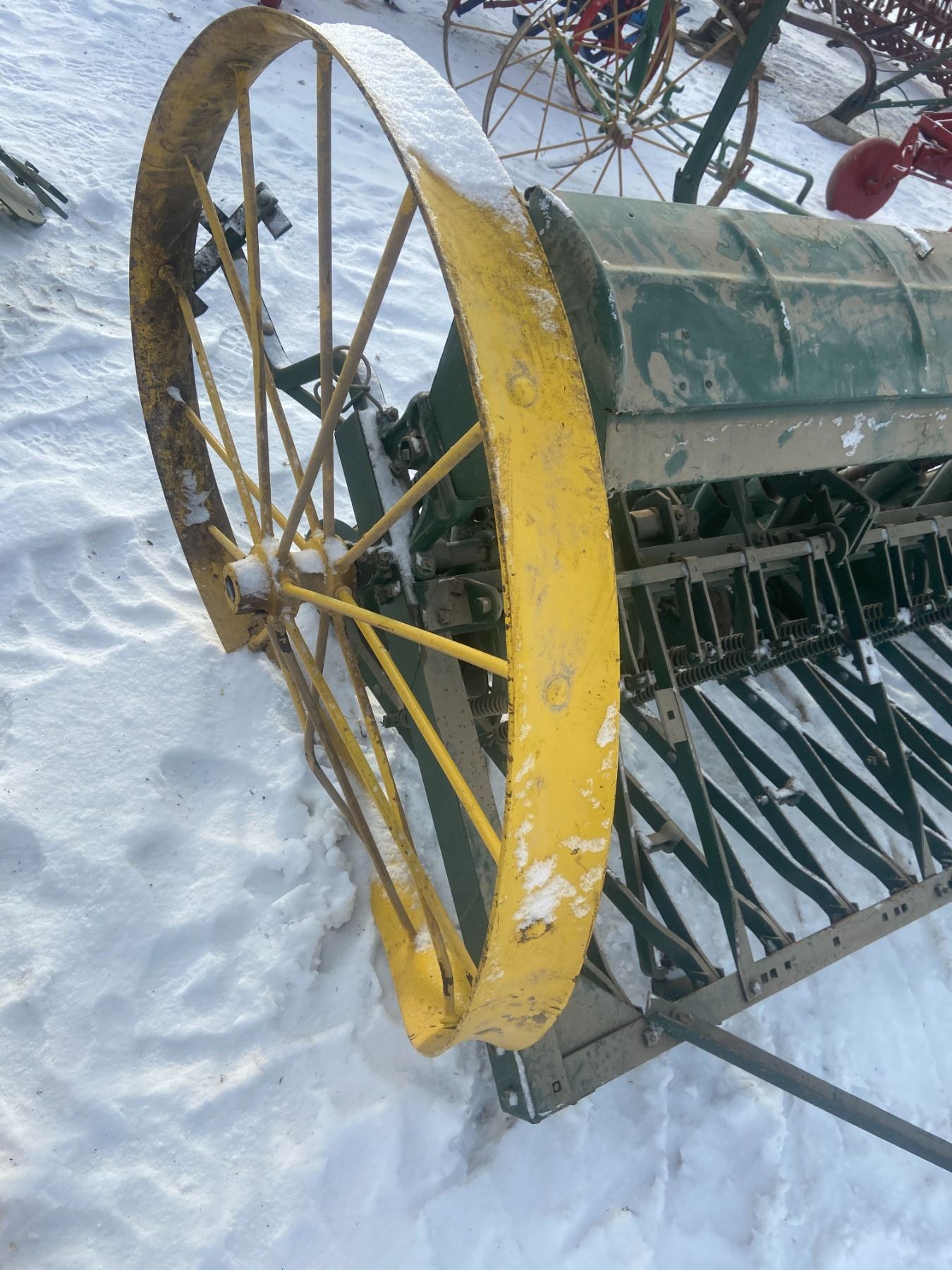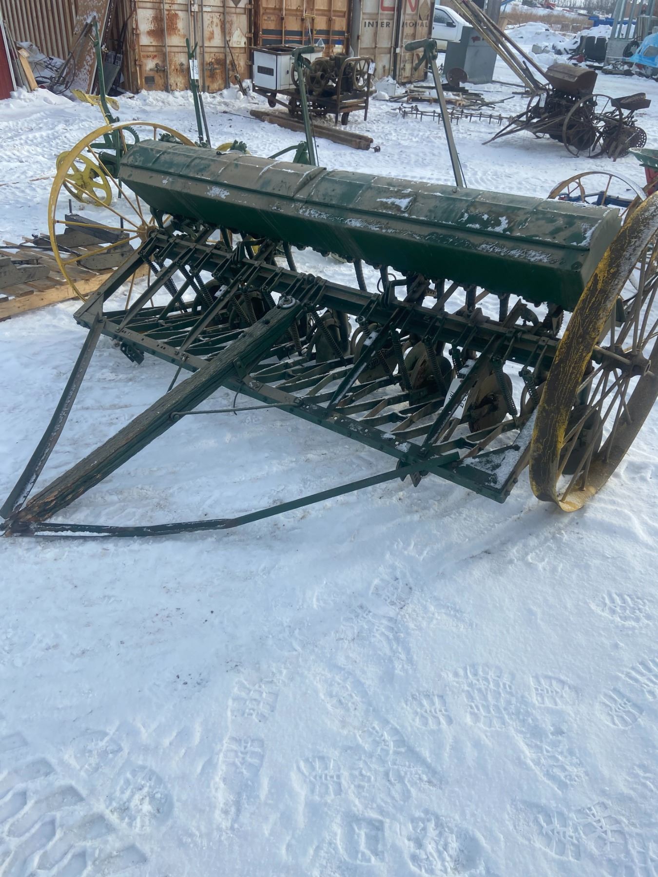 8' SEED DRILL, METAL BOX, 1 WHEEL BENT (Easy Fix)