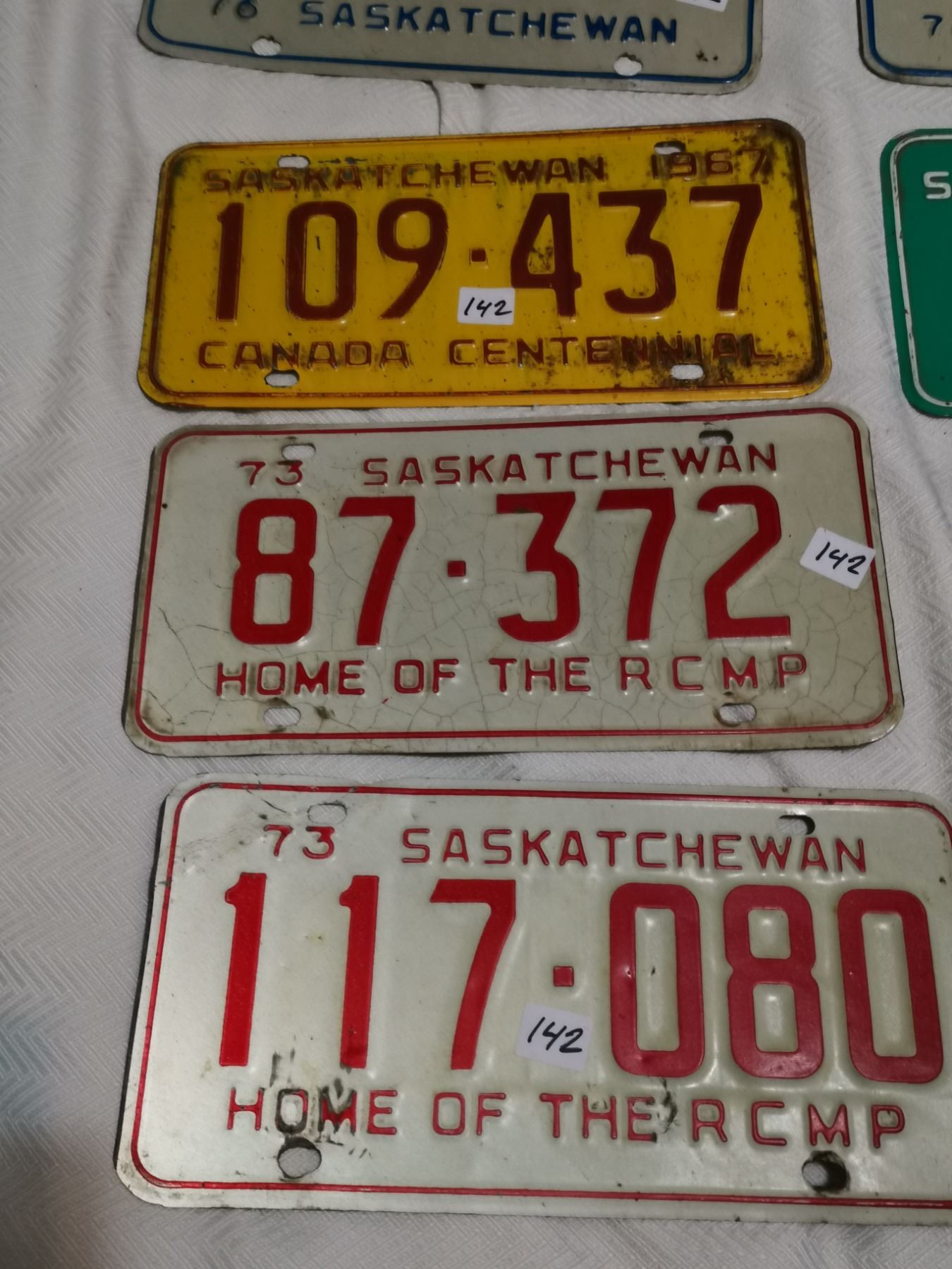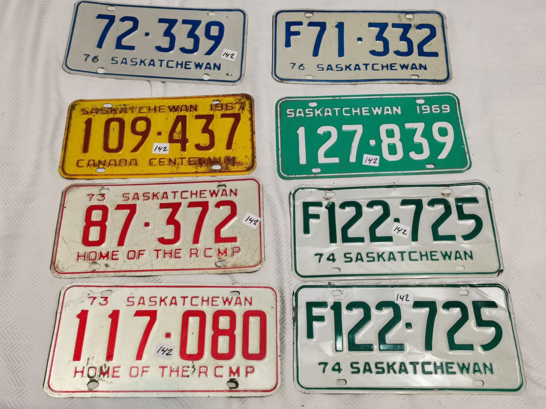 8 Saskatchewan license plates 1974, 67, 76, 73, 69