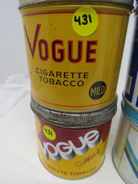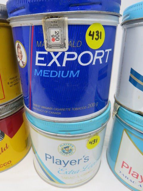8 TOBACCO TONS- 2 VOGUE MILD, 1 MACDONALD EXPORT MEDIUM, 3 PLAYER'S -1 EXTRA LIGHT,1 LIGHT, 1 REGULA