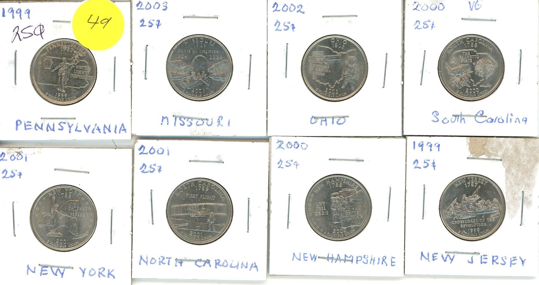 8 Various US States 25 Cent Coin 1999-2003 INCL.