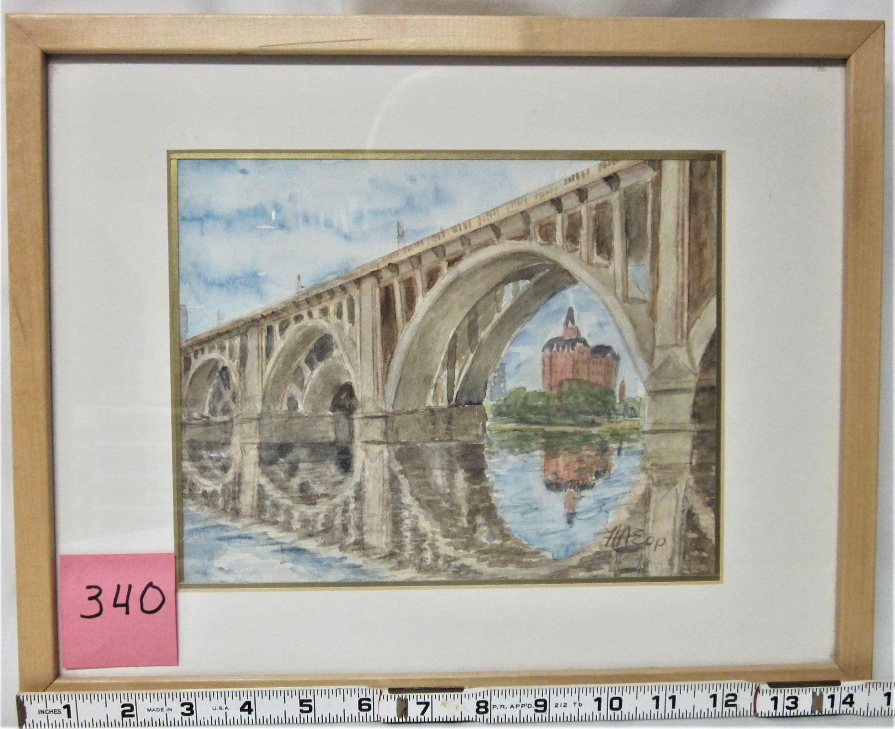 8" X 10" FRAMED MATTED ORIGINAL "WATERCOLOR" SASKATOON BROADWAY BRIDGE