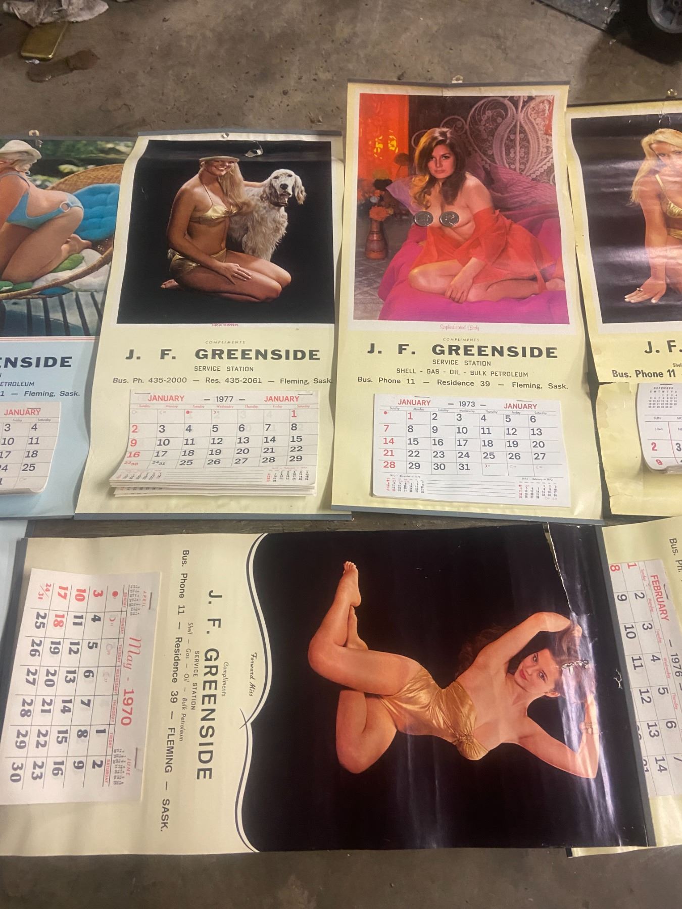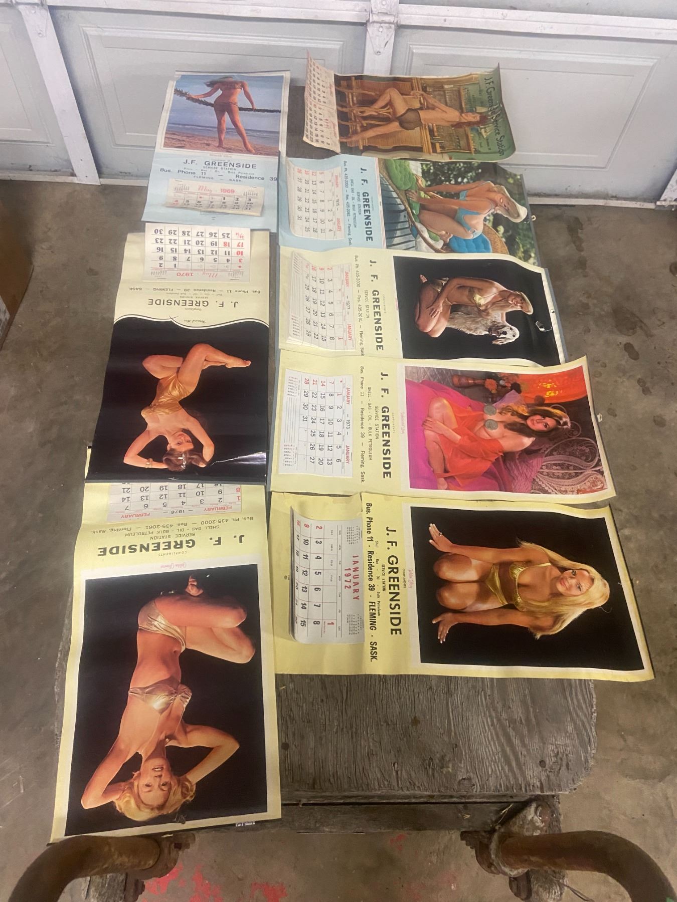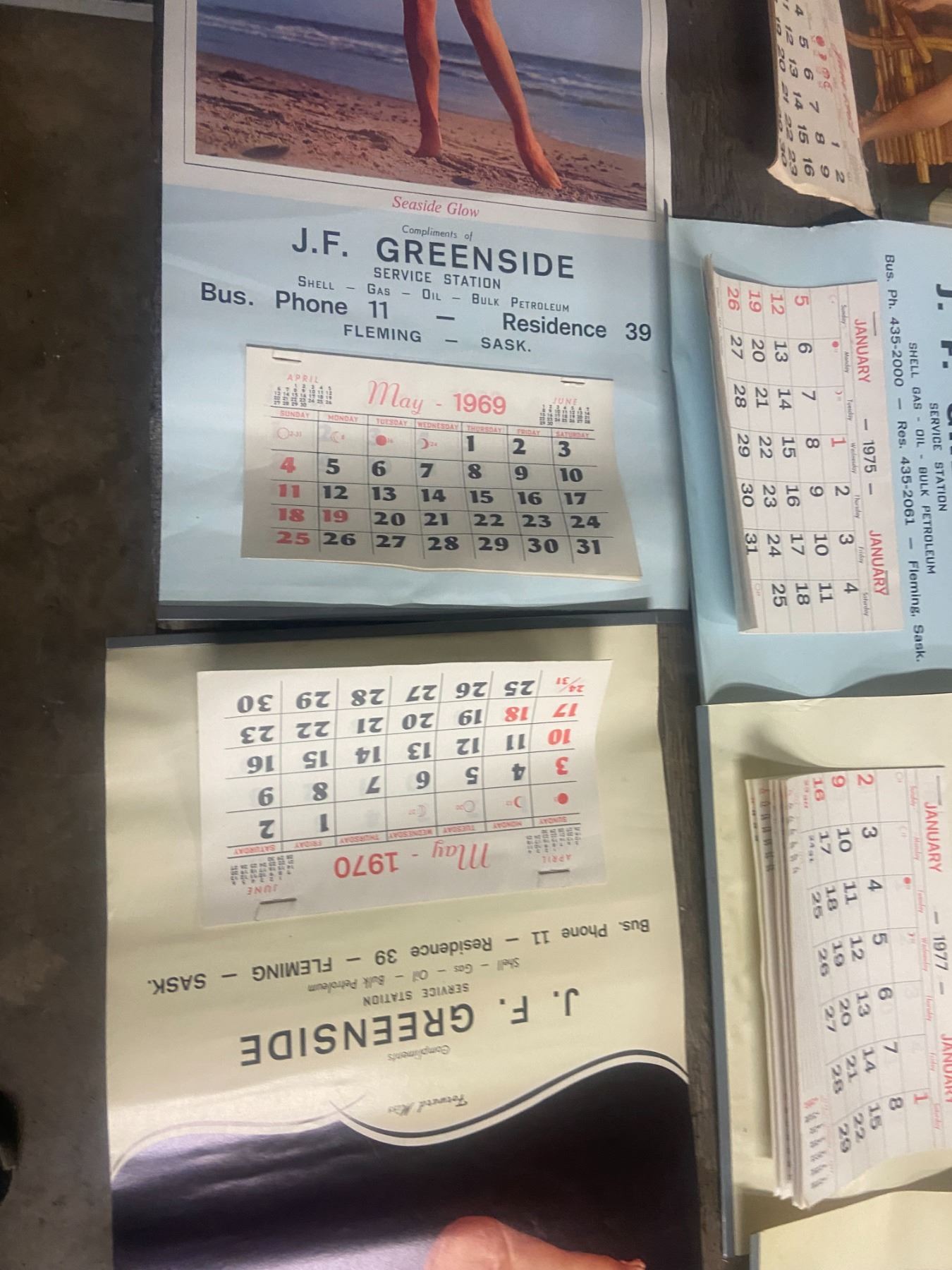 8 pin cup calenders - 1962, 69, 70, 72-73, 75-77 - Green side service station, Fleming, SK - quarter