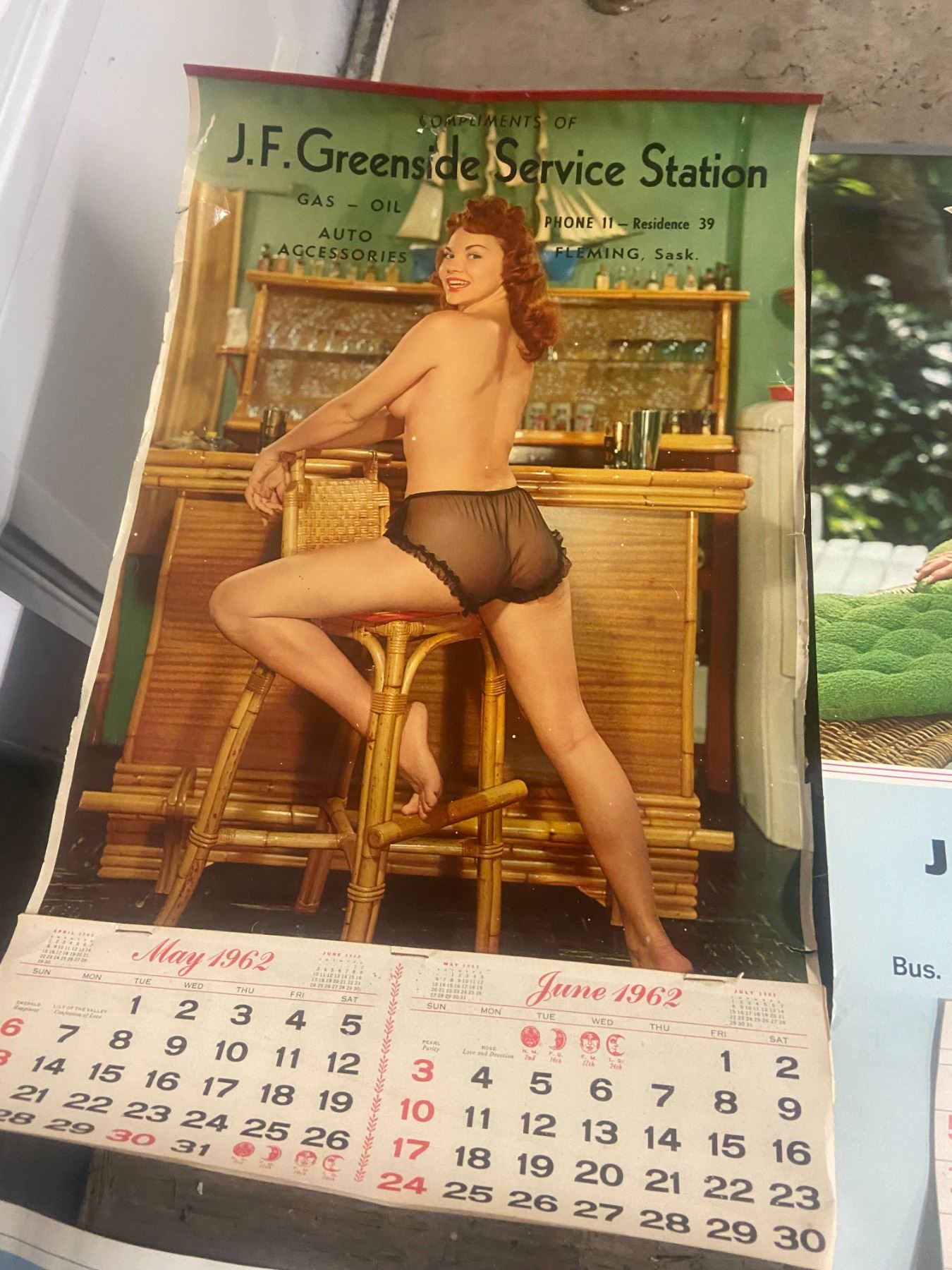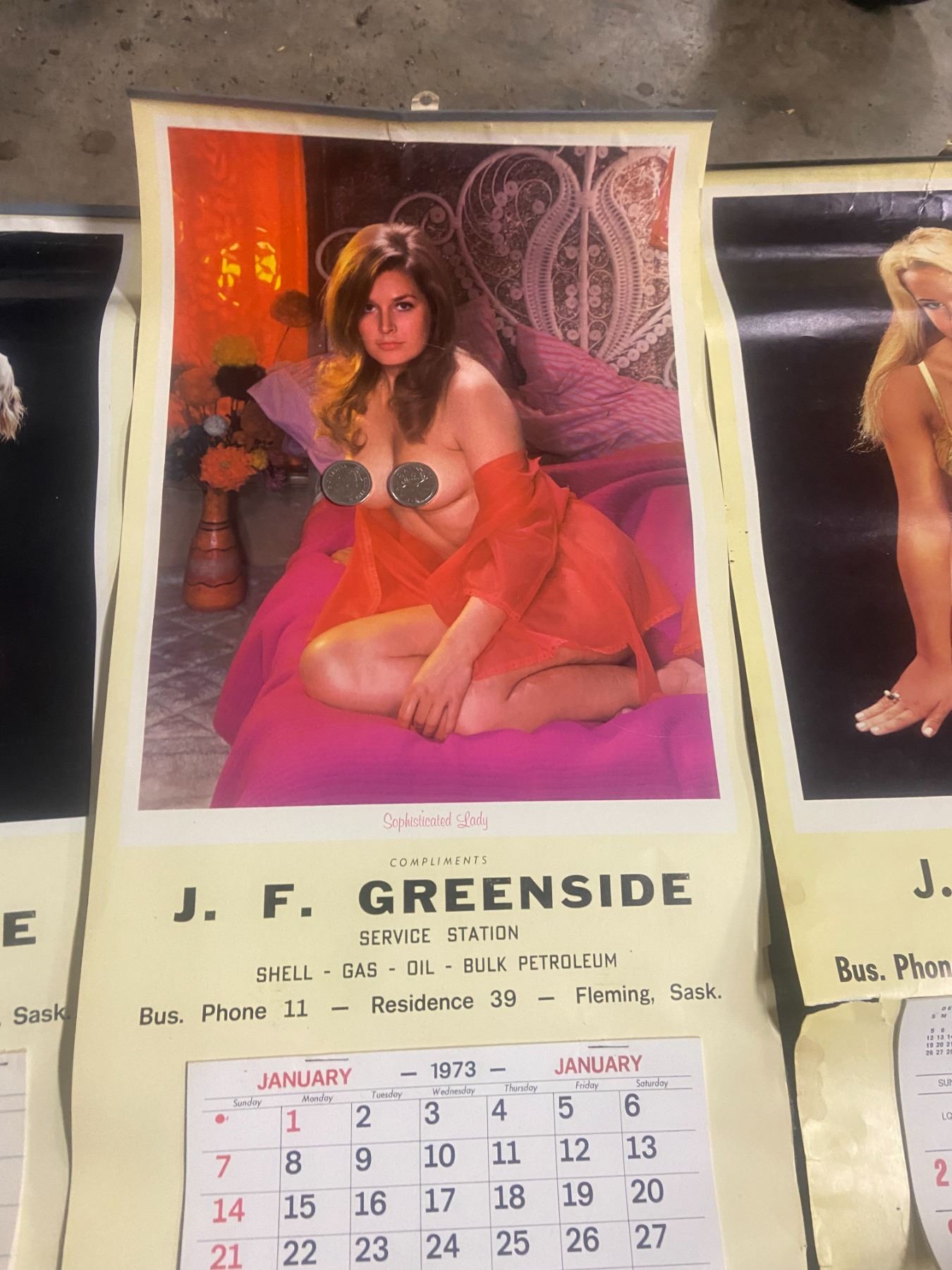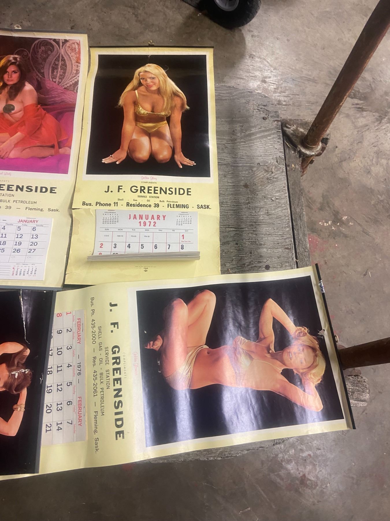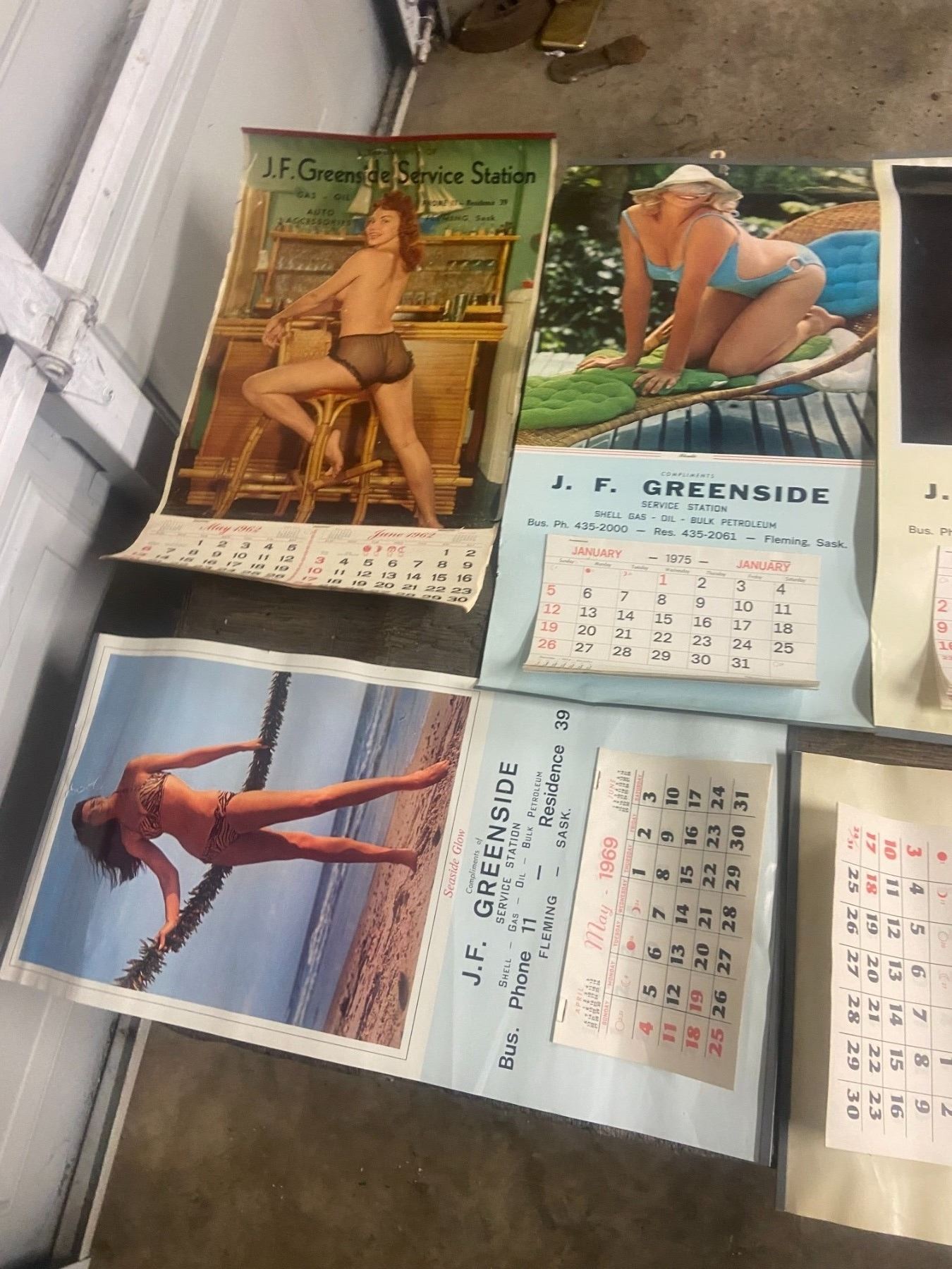 8 pin cup calenders - 1962, 69, 70, 72-73, 75-77 - Green side service station, Fleming, SK - quarter