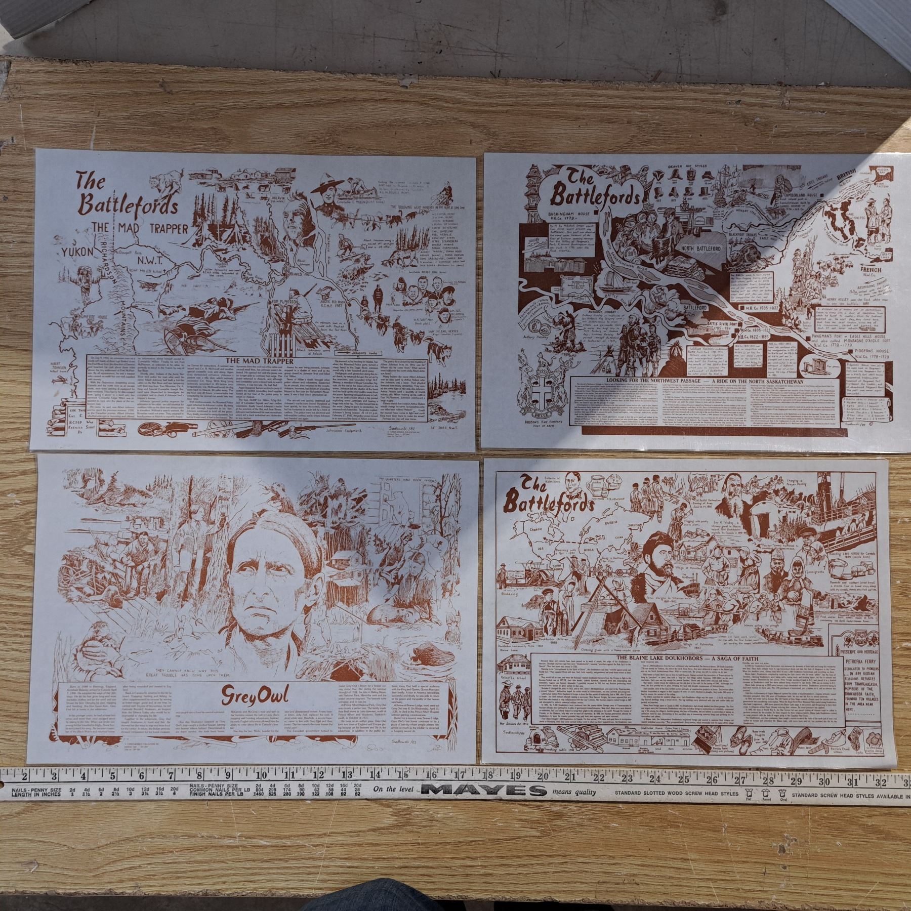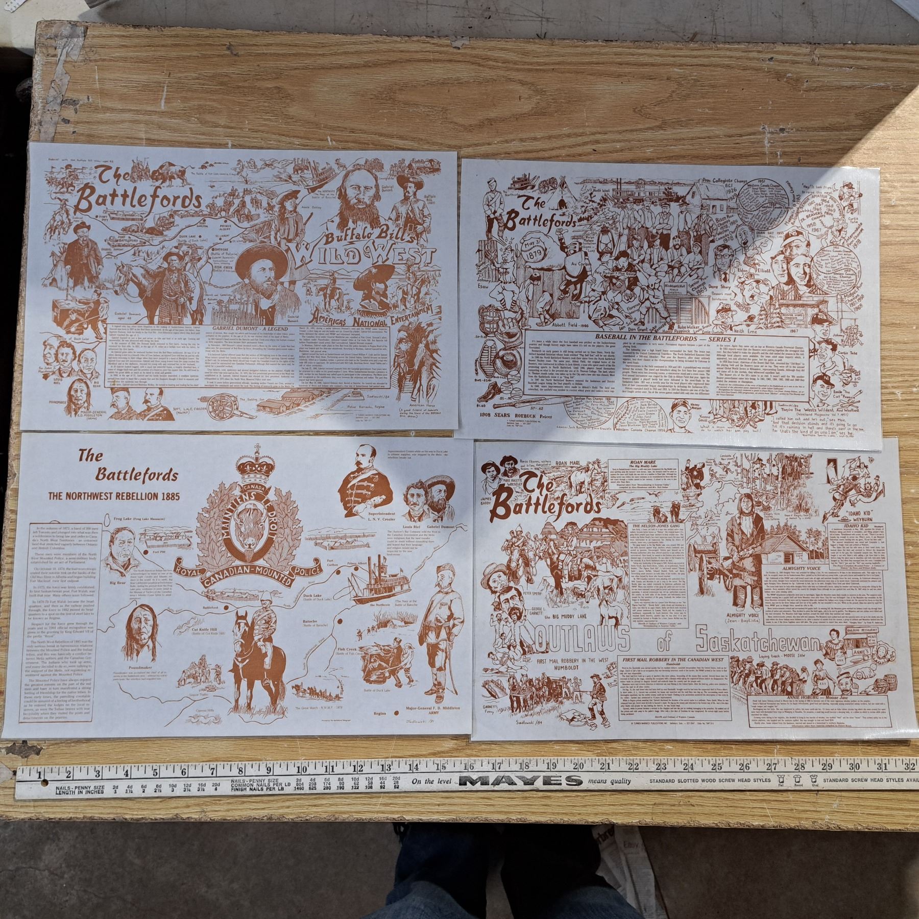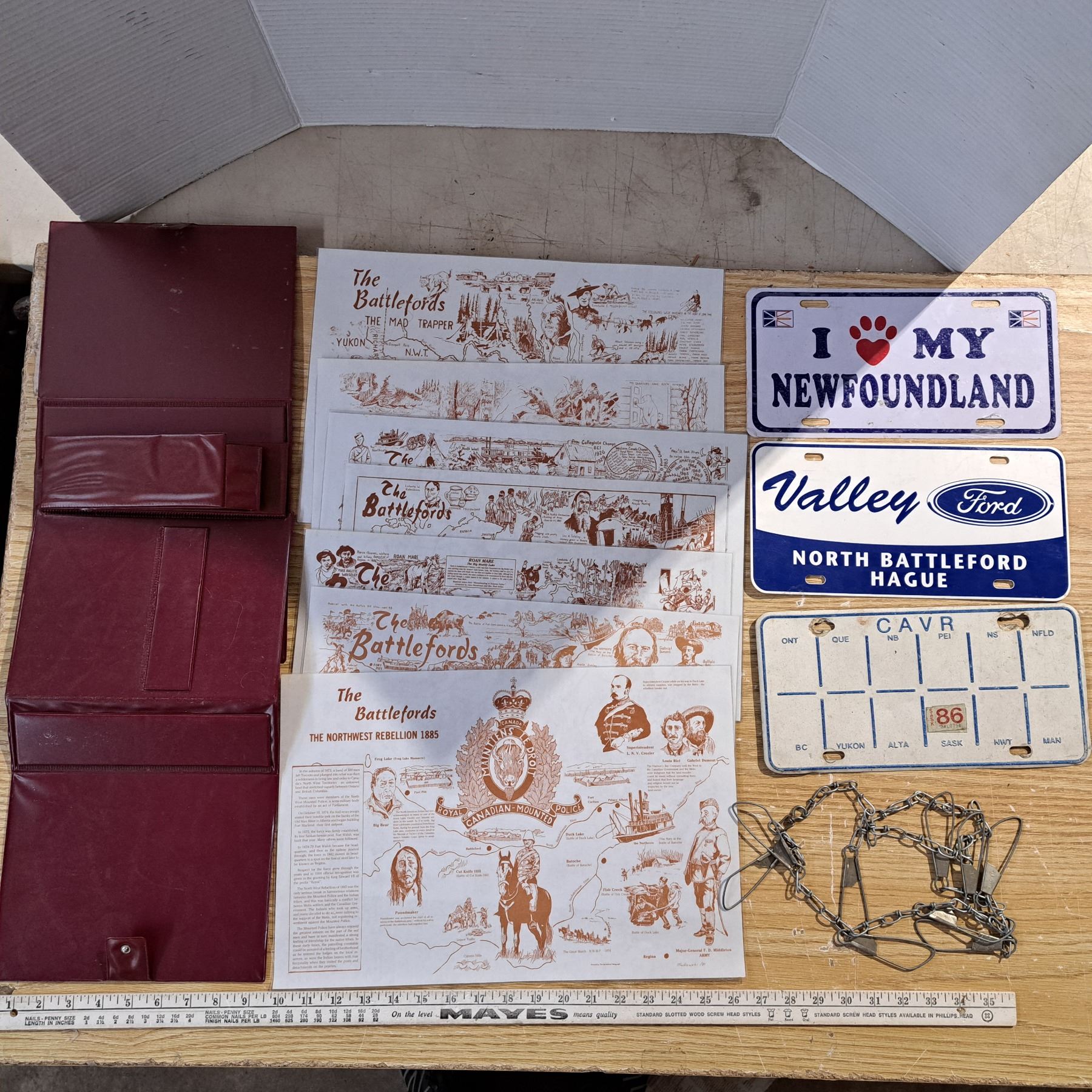 8 place mats the northwest rebellion 1885, novelty plates ,fish chain and 2 cassette albums