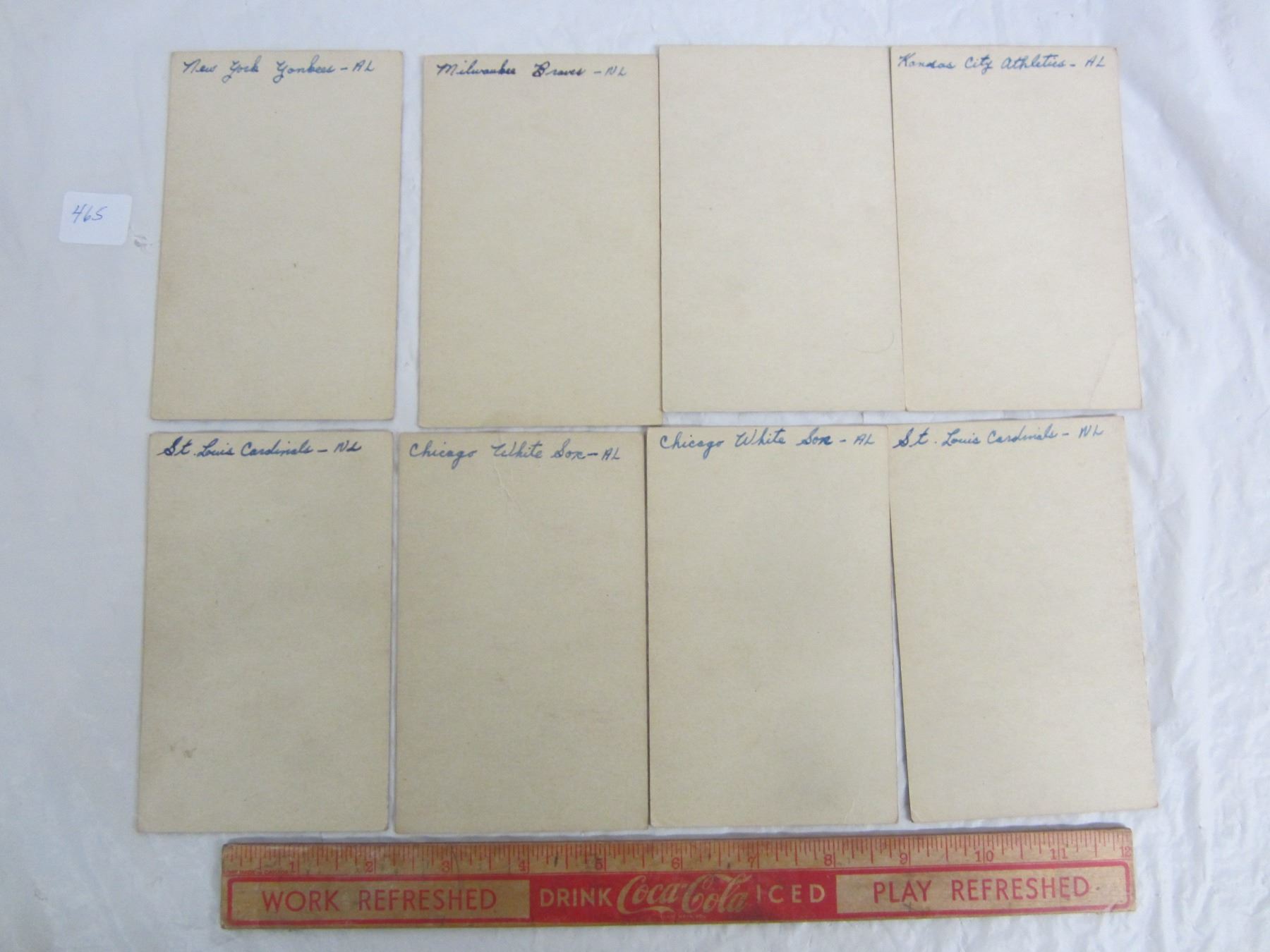 8 x 1950's Baseball Cards Pierce ect 3 3/8 x 5 1/4 inches