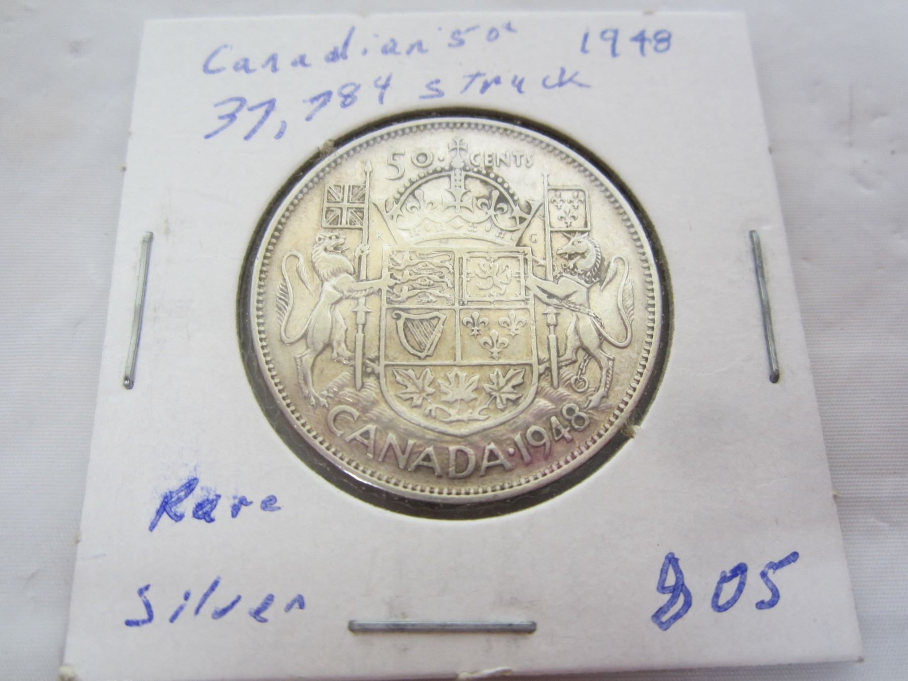 805. Rare Canadian Silver 1948 Fifty Cent Piece Mintage 37,784