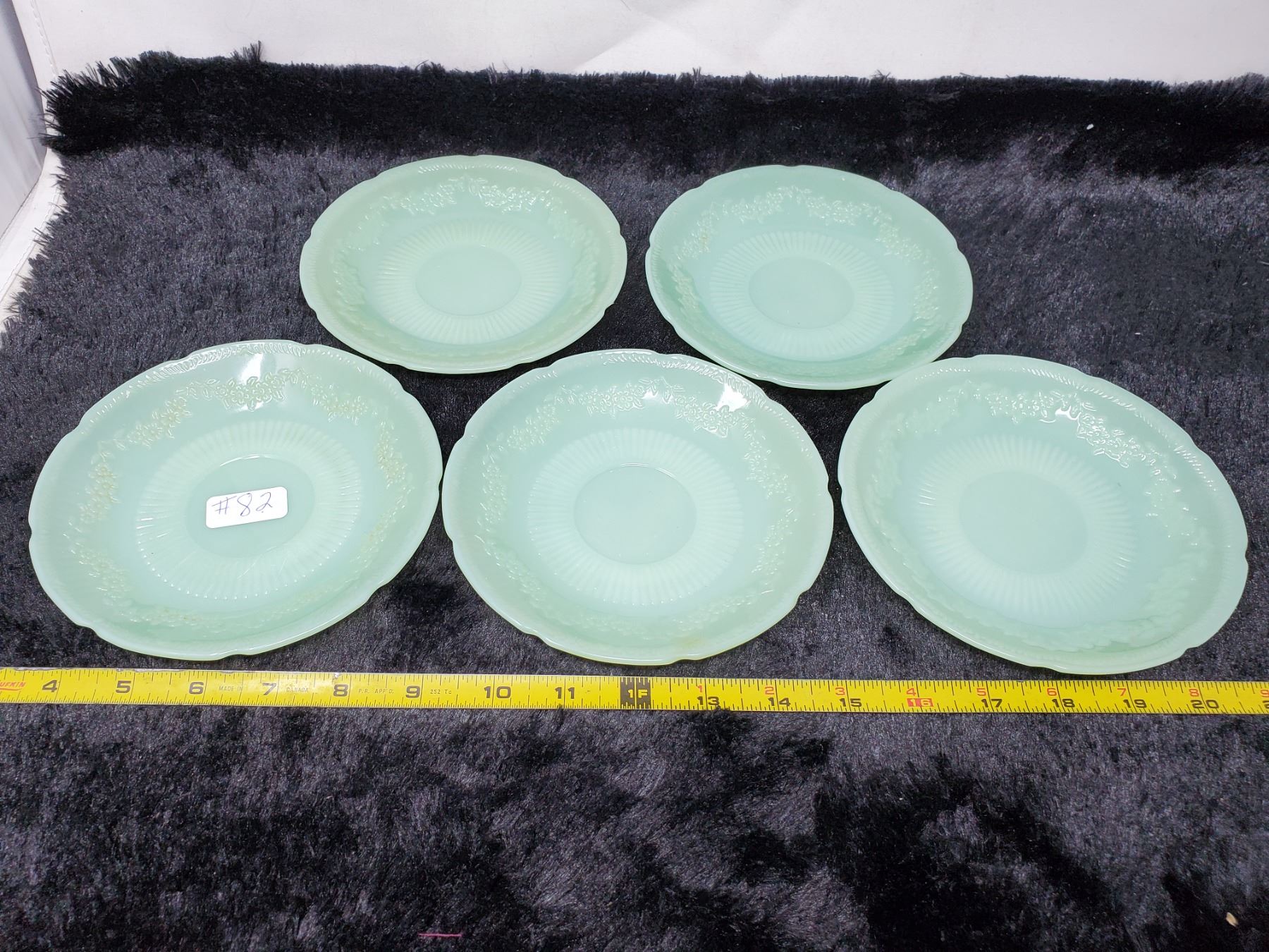 82. Lot of Jadite saucers, “Alice” pattern (5)