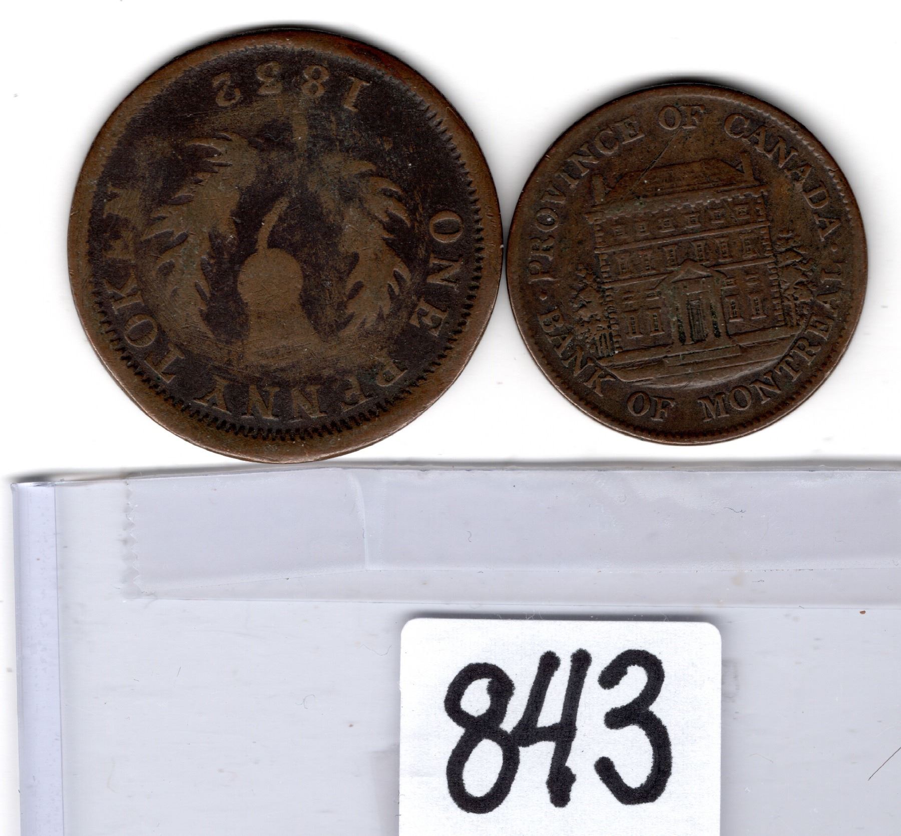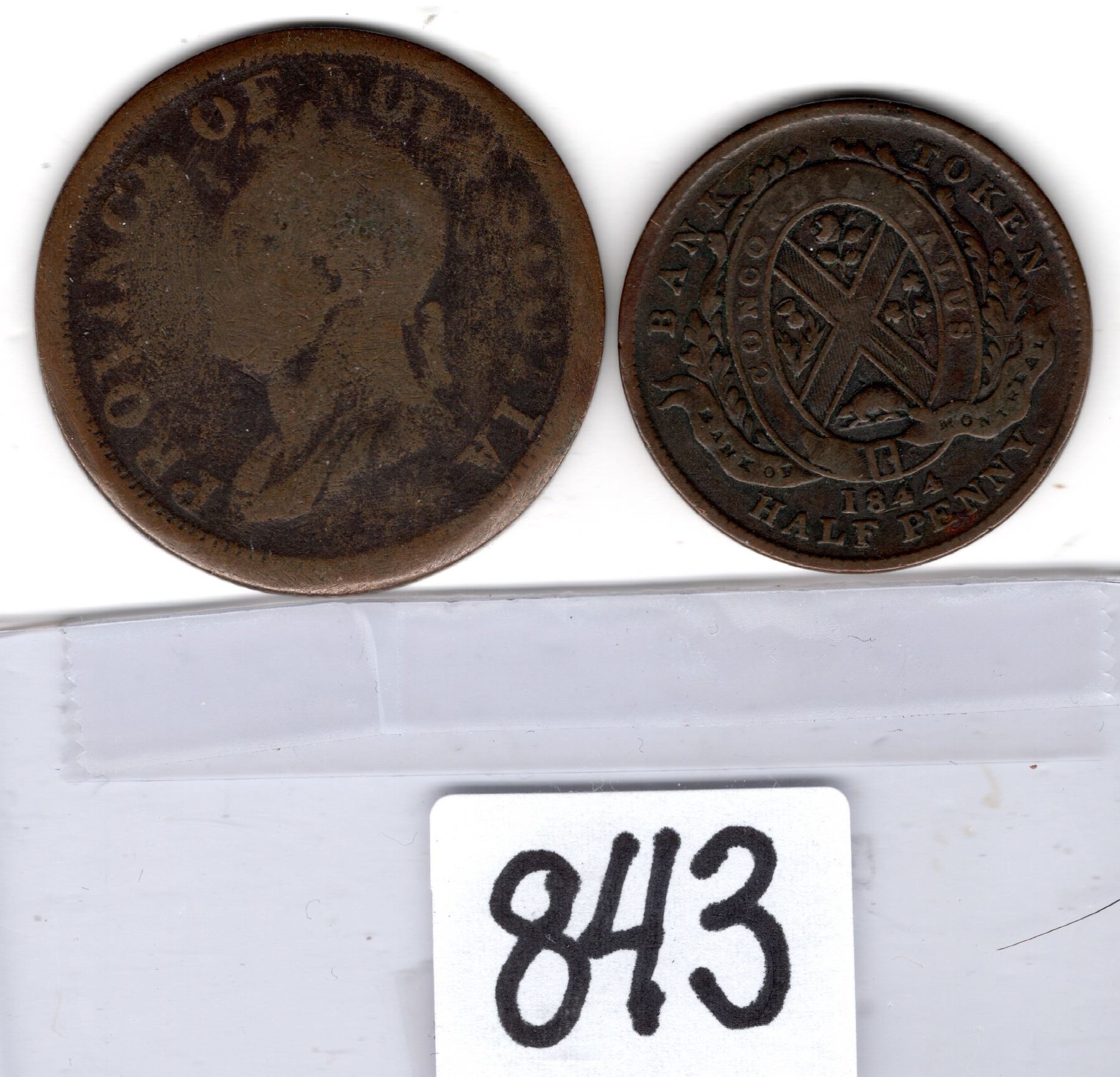 843 TWO EARLY COLONIAL TOKENS. 1 PENNY AND HALF PENNY