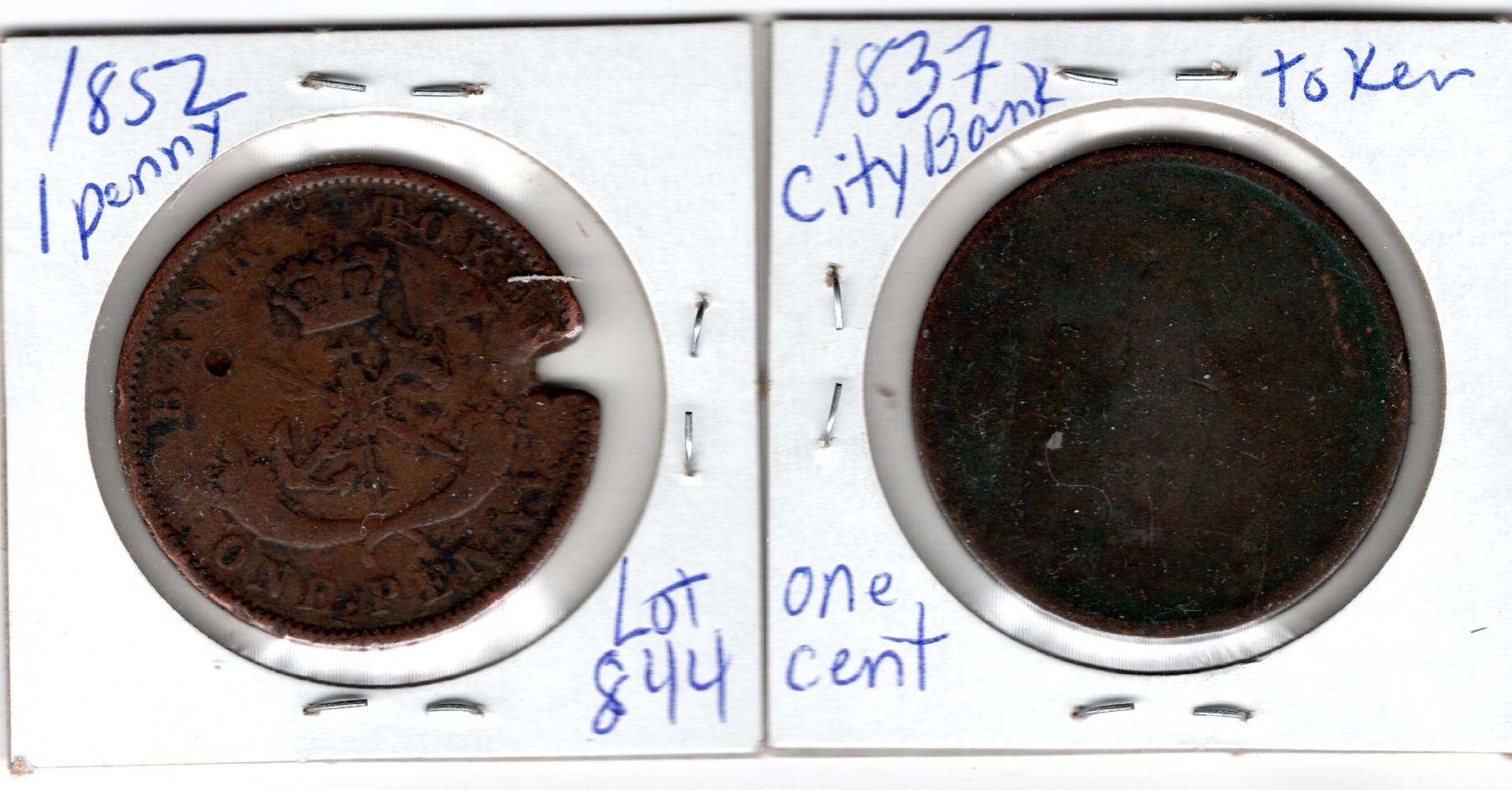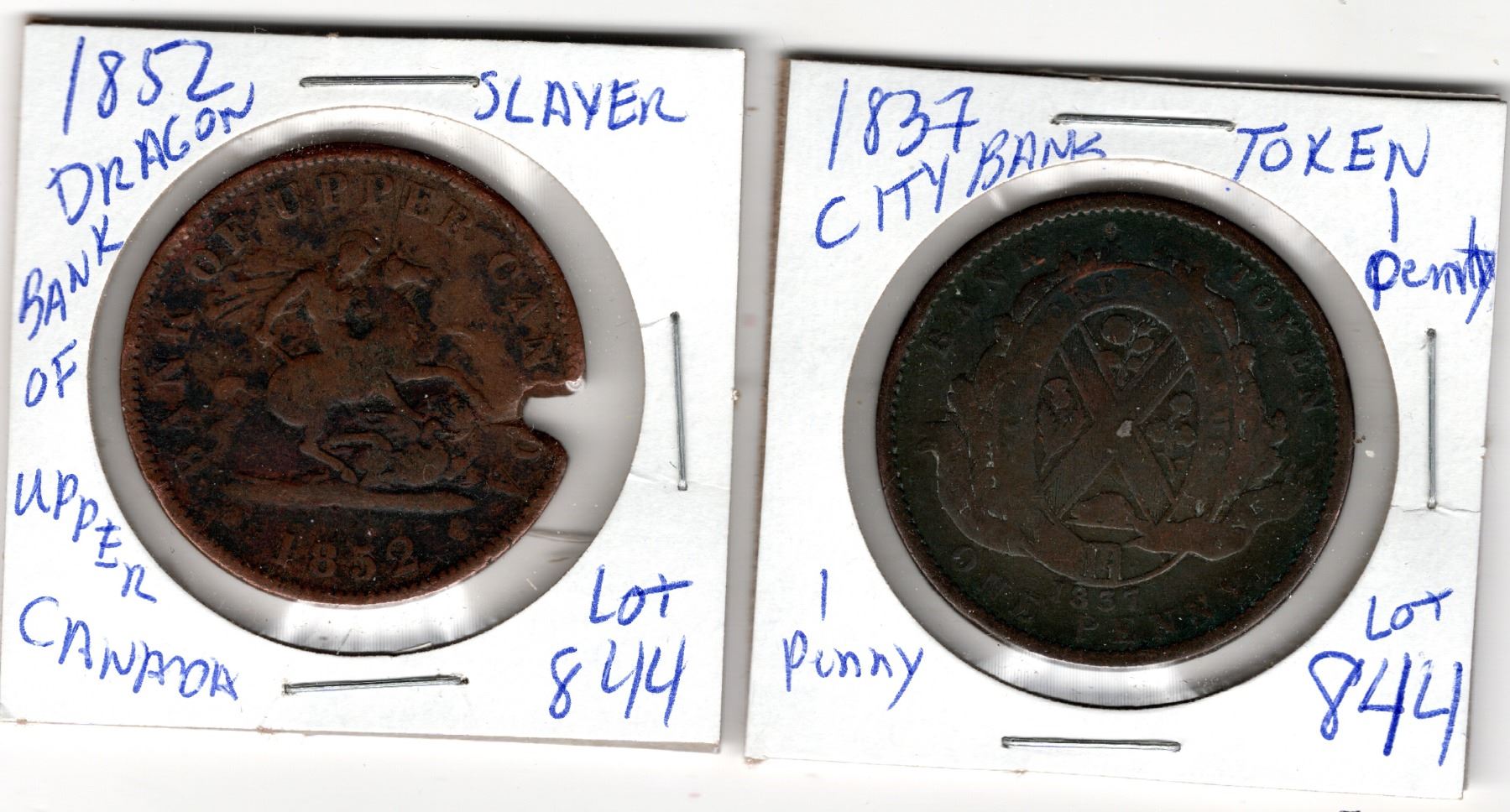 844 ONE PENNY 1852 DRAGON SLAYER & 1837 BANK TOKENS