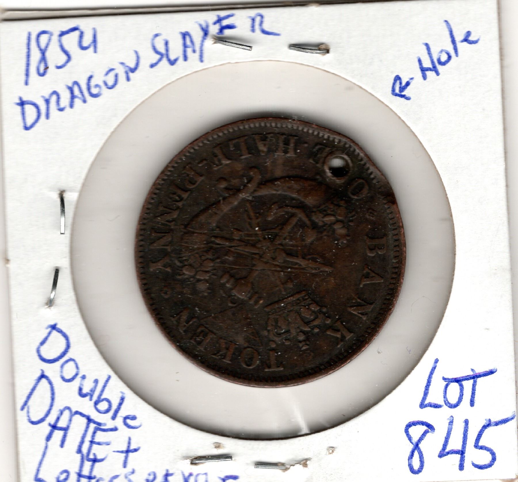 845 1851 DRAGON SLAYER HALF CENT WITH DOUBLING ERRORS