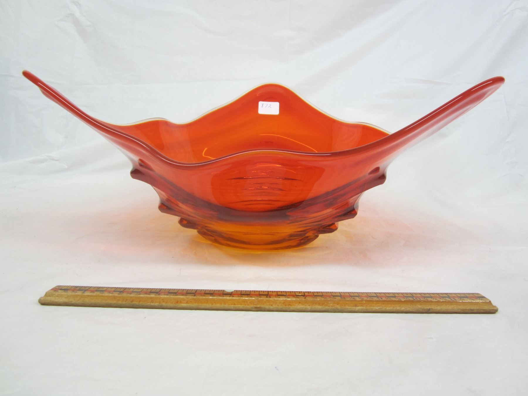 872. Large 14 inch Art Glass Bowl Deep Orange