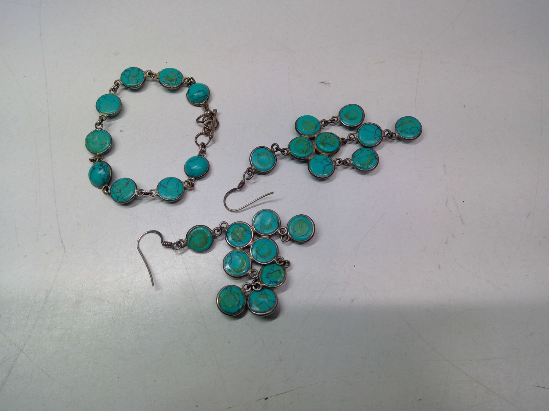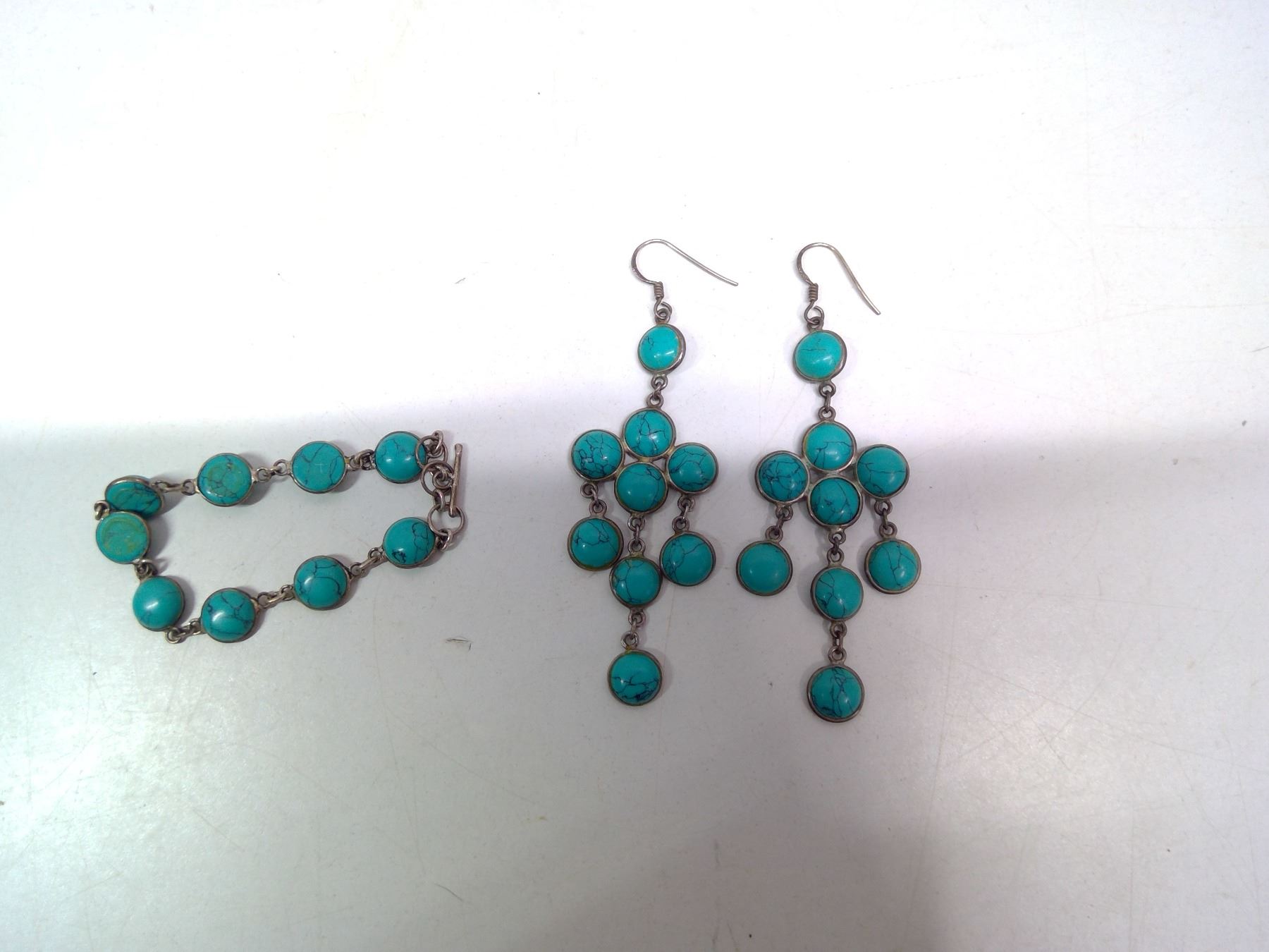 879. Sterling silver earrings with faux turquoise and matching bracelet
