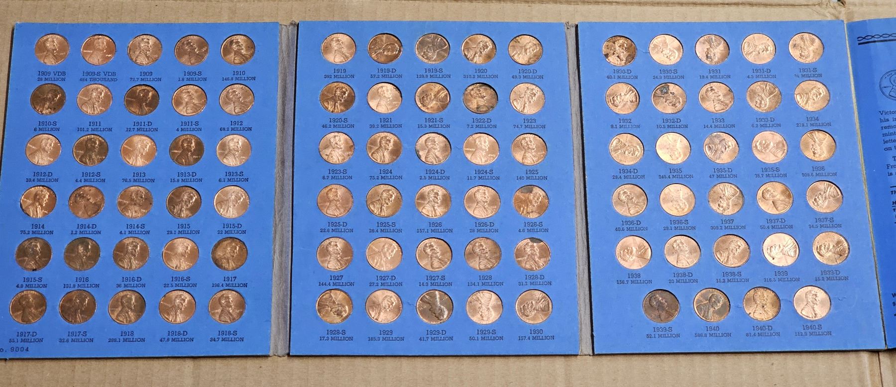 (89) Assorted US Pennies in Lincoln Cent US Coin Book **Coins do NOT coincide with labeled year.