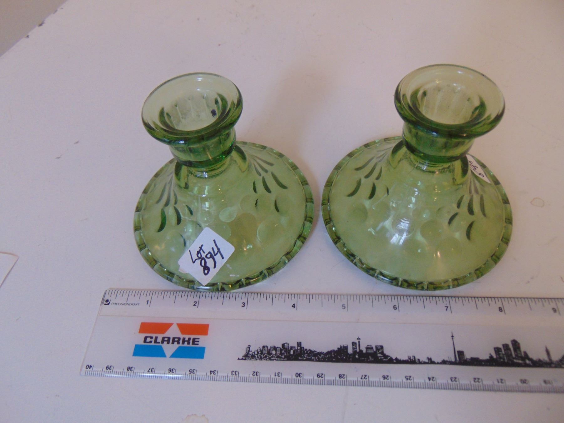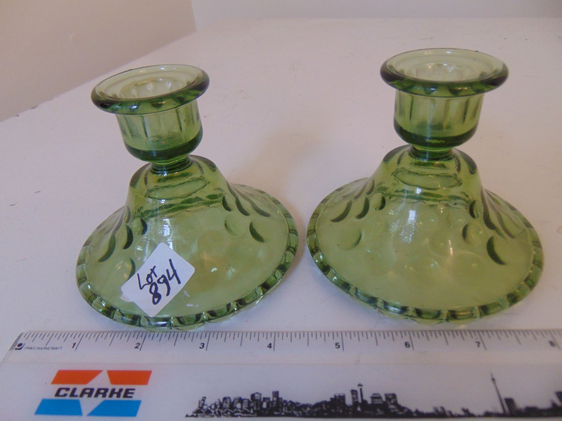 894 REVERSE HOBNAIL PATTERN PRESSED GLASS CANDLE HOLDERS